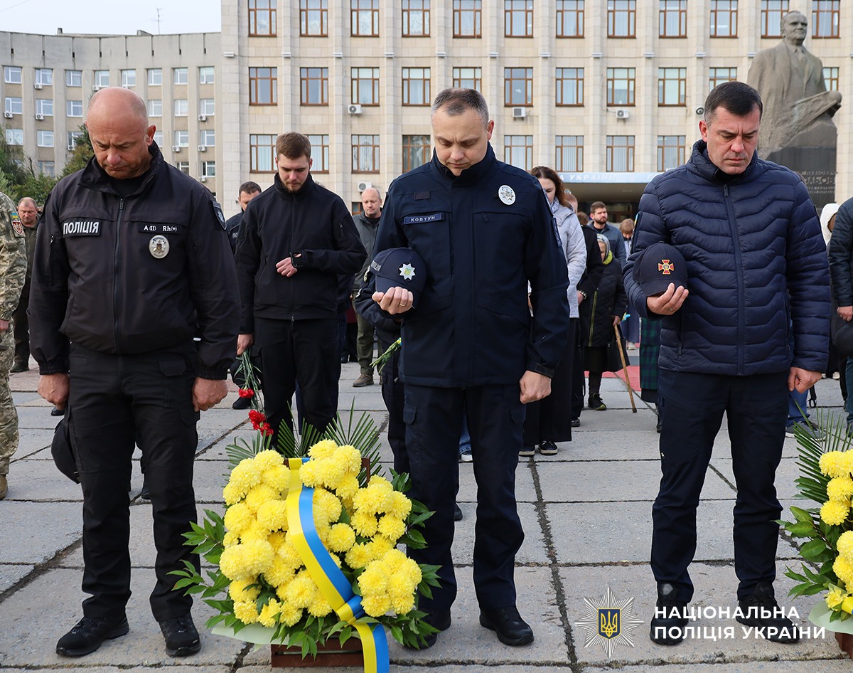 Також поліцейські вшанували пам'ять полеглих воїнів біля пам’ятного знака «Захисникам України у війні з російським агресором» на майдані Перемоги.