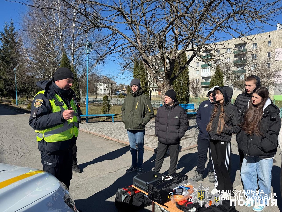 Поліцейський розповідав присутнім про свою професію, нагадував про алгоритм дій у разі виявлення підозрілих предметів, виникнення надзвичайних ситуацій, а також закликав дотримуватися правил безпеки.