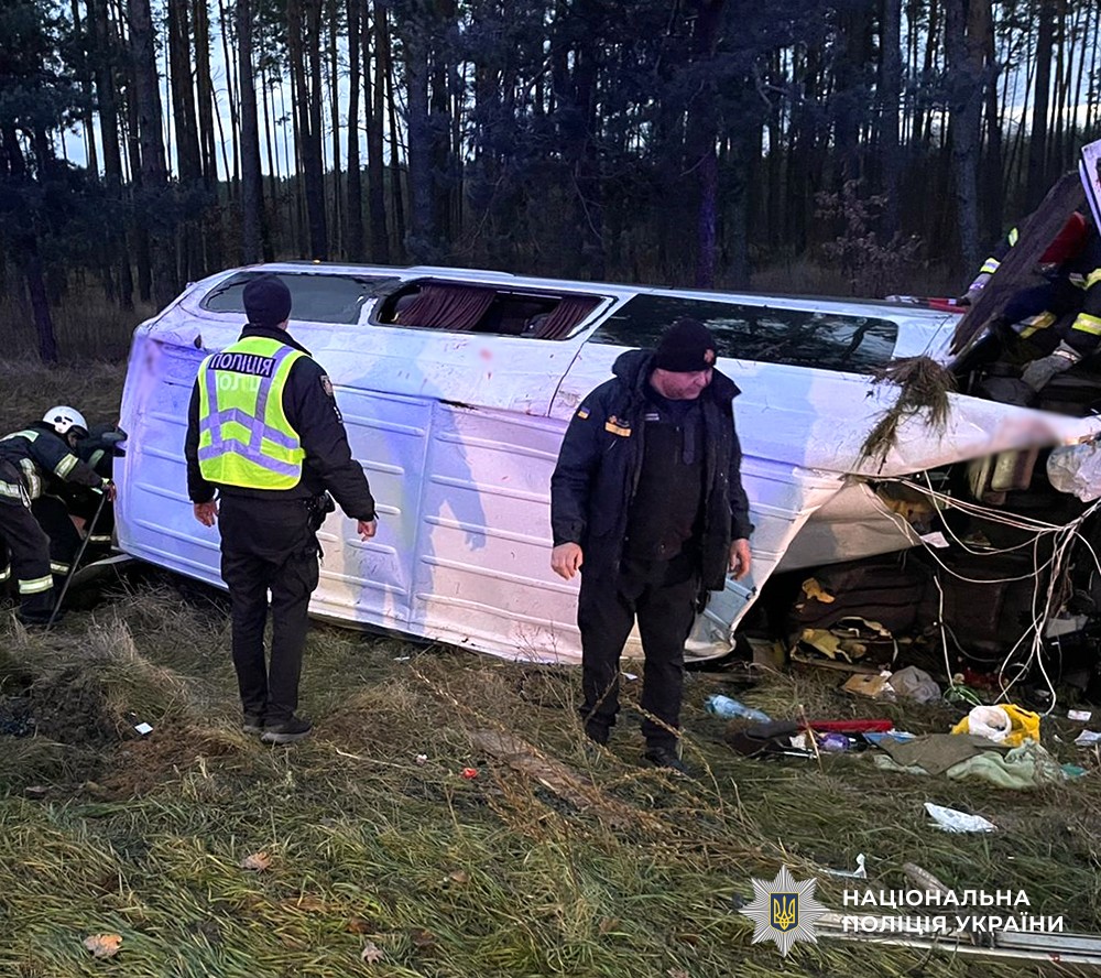 Станом на 15:00 відомо, що внаслідок ДТП травмовано п’ятьох пасажирів мікроавтобуса, серед яких: 16-річний житель Рівненщини, 71-річна мешканка Черкас, 58-річний харків’янин, 39-річна жителька Миколаєва та 53-річна киянка.