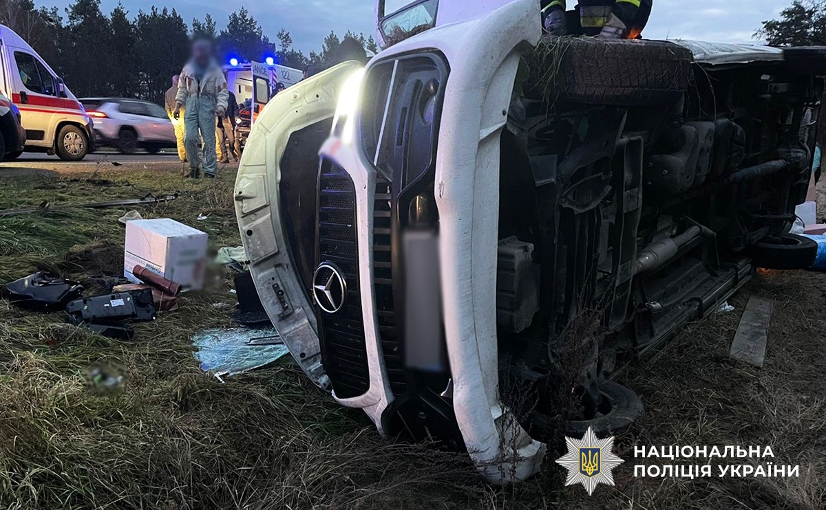 Дорожньо-транспортна пригода сталася 19 грудня на автошляху Київ-Чоп, поблизу м. Коростишева. Близько 7:30 відбулось зіткнення мікроавтобуса Mercedes Sprinter та вантажівки ГАЗ.