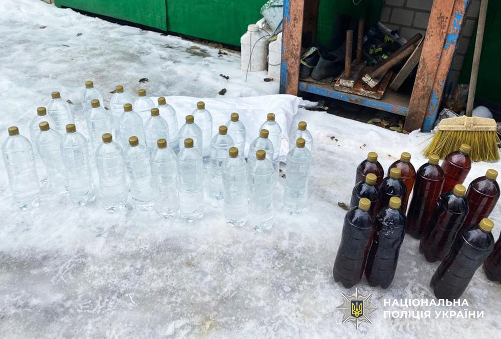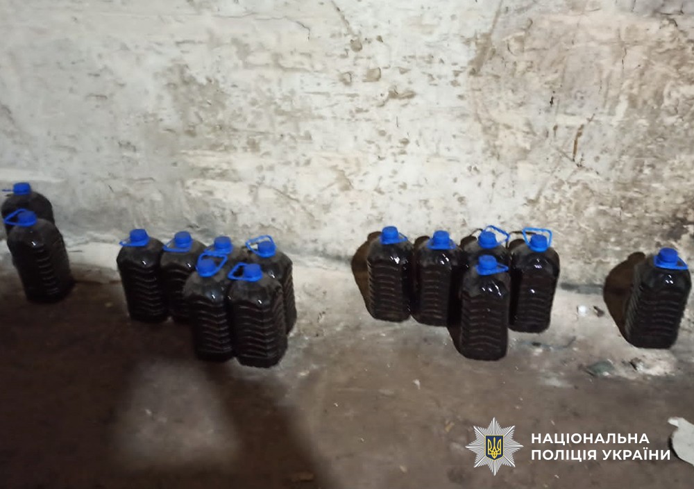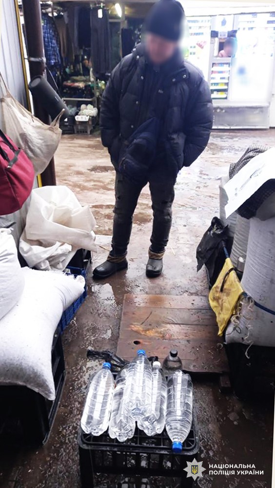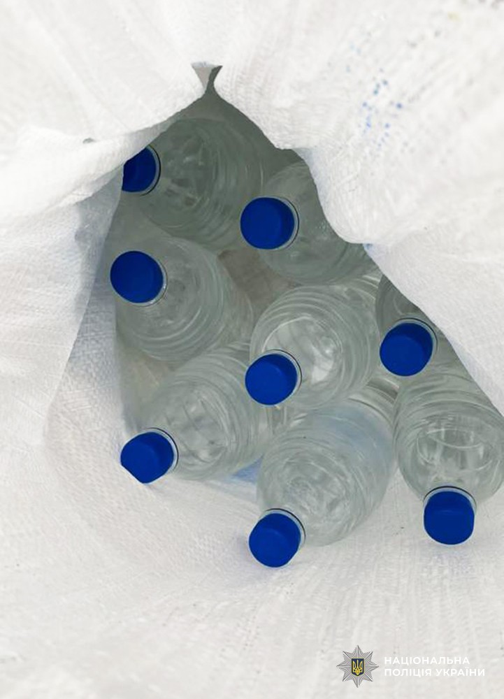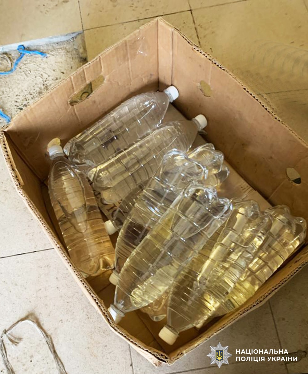 Готову продукцію сумнівної якості розливали у підпільному цеху, для цього використовували пластикові каністри та пляшки різних об’ємів. Після чого здійснювали їх збут у пункті реалізації, облаштованому під місце торгівлі насінням.