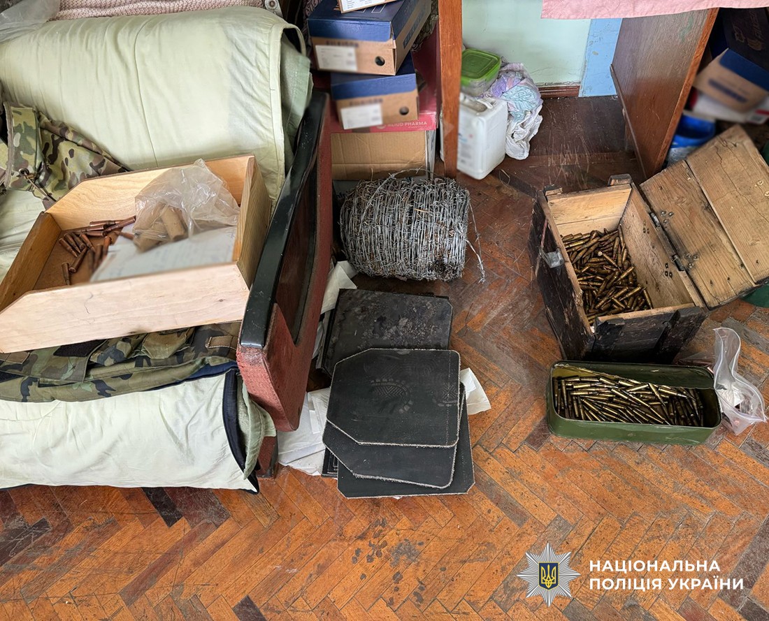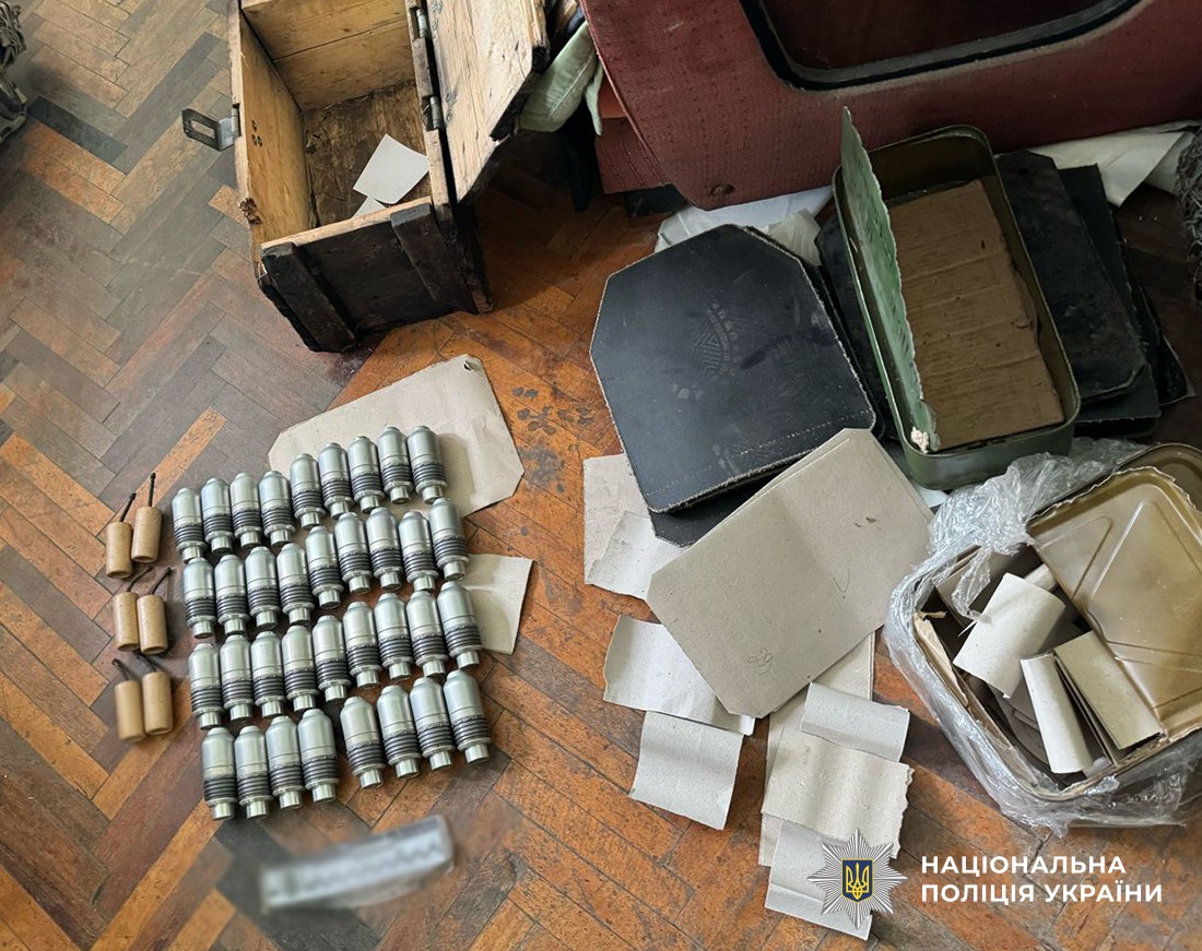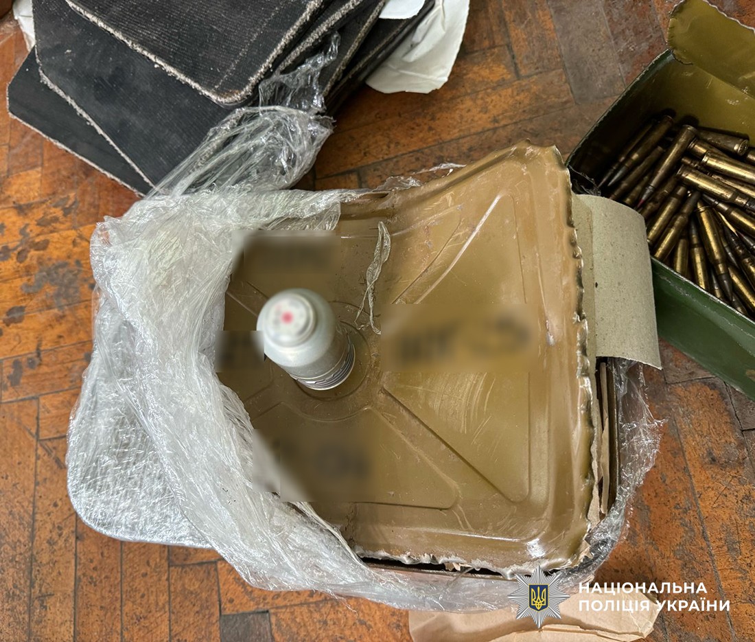 Також чоловік влаштував «схрон» у гаражному кооперативі: там поліцейські знайшли ще майже 1,9 тисячі набоїв до стрілецької вогнепальної зброї калібру 5,45 та 7,62 мм, реактивний піхотний вогнемет та протитанкову гранату, понад 20 наступальних та оборонних ручних гранат, сім пострілів ВОГ різного калібру. Ще 54 патрони калібру 5,45 мм він зберігав у власному автомобілі «Opel Vivaro».