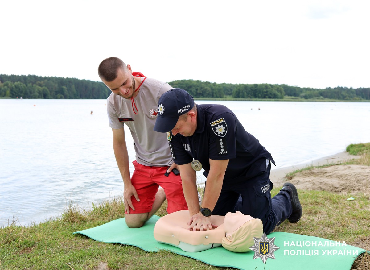 Про базові правила поводження на воді та як реагувати в разі виникнення позаштатних ситуацій відпочивальникам розповідали ювенальні інспектори ГУНП в Житомирській області, поліцейські охорони та патрульні, рятувальники, а також інструктори Червоного Хреста.