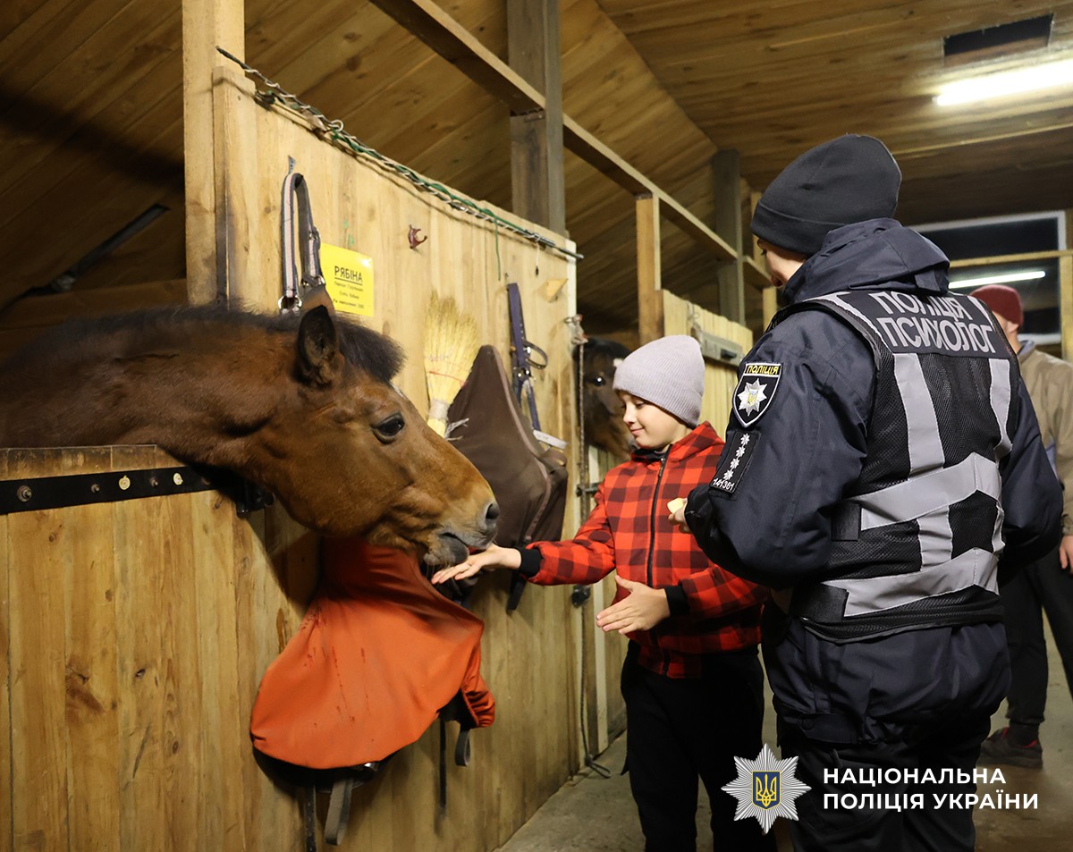 18 грудня фахівчині відділу психологічного забезпечення УКЗ ГУПН влаштували прогулянку верхи для 10-річного Артема. Батько хлопчика, поліцейський батальйону особливого призначення (стрілецький) Житомирщини, зазнав поранення під час бойових дій. Захід відбувся в рамках реалізації проєкту «Пункт психологічних практик».