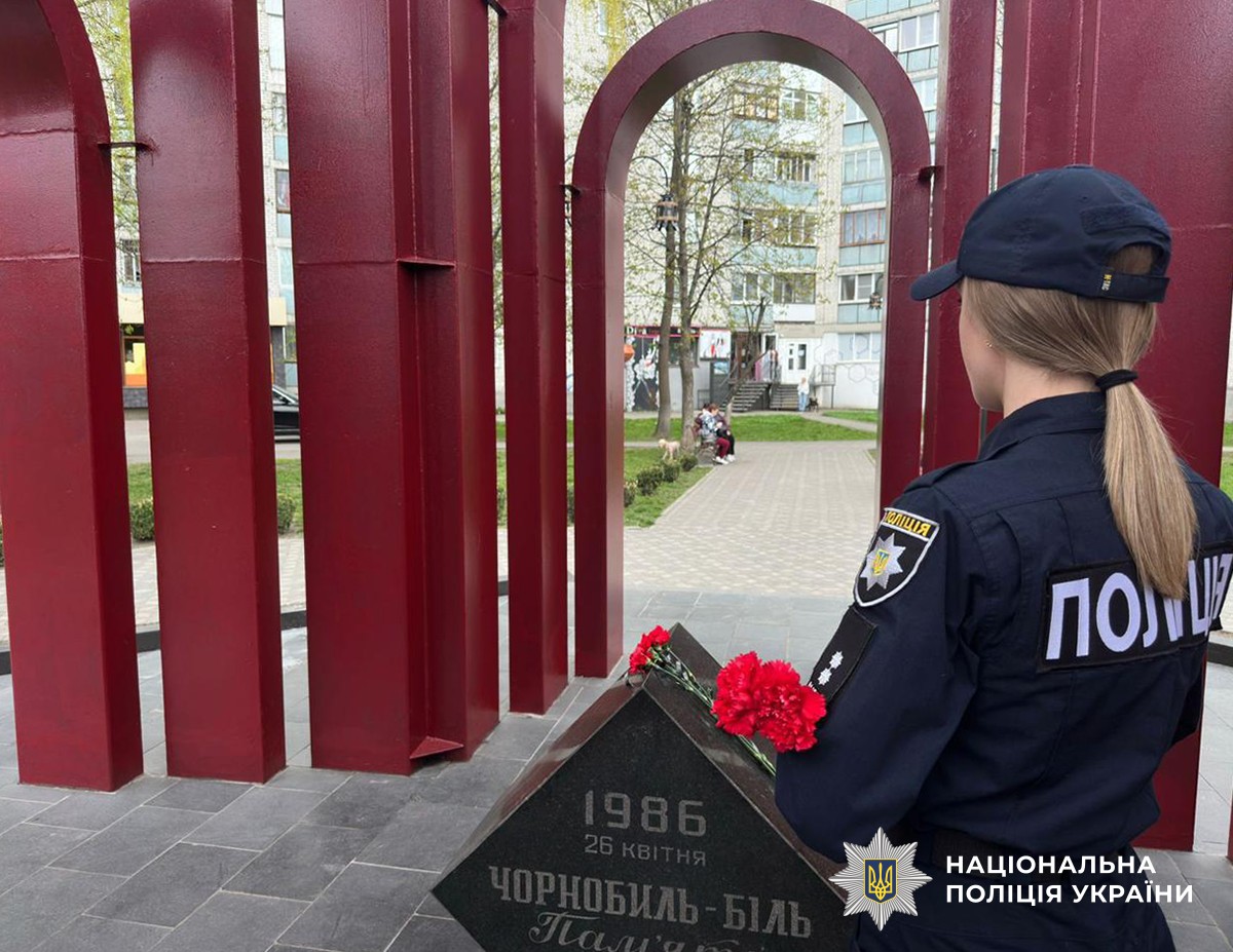 Ліцеїсти та поліцейські разом поклали квіти до пам’ятного обеліска, вшанувавши хвилиною мовчання тих, хто віддав життя, рятуючи світ від атомного лиха.