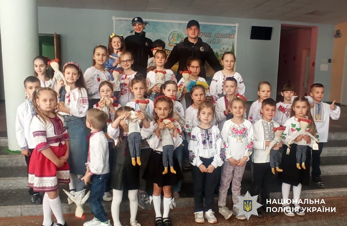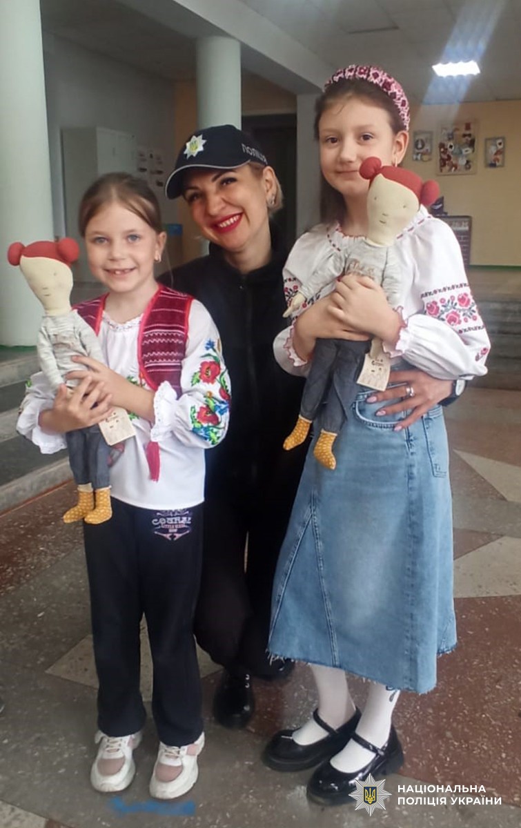 Звісно найприємнішим моментом зустрічі стали подарунки. Правоохоронці презентували дітям сучасні ляльки з тканини і разом з ними «одягнули» їх у вишиванки.