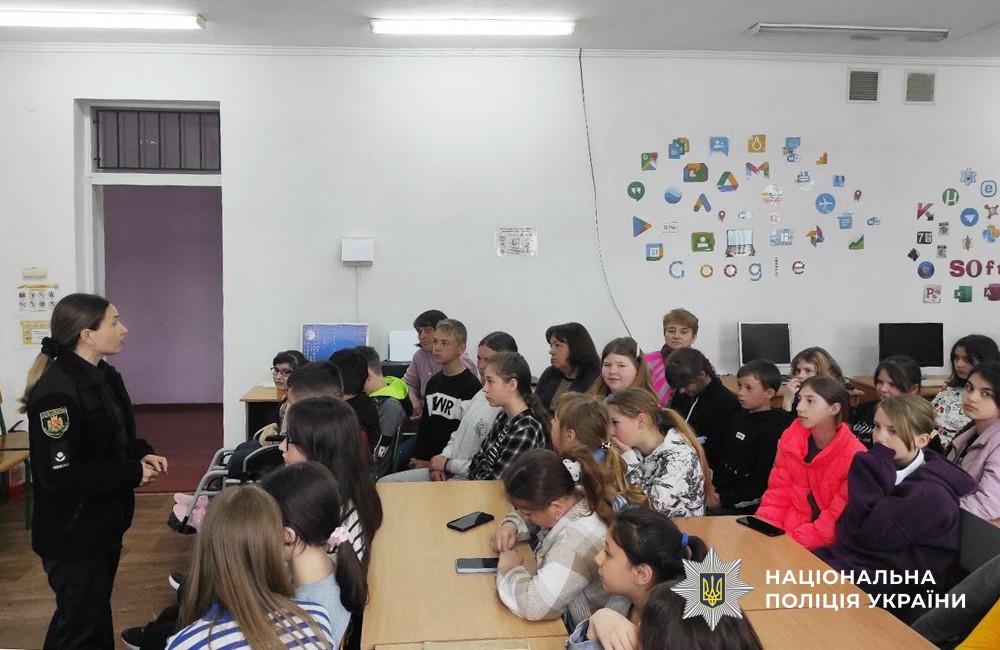 Правоохоронці навчили дітей, як отримувати з мережі Інтернет лише корисну та безпечну інформацію та уникати ризиків. Розповіли їм про те, чим небезпечні соцмережі, що таке кіберзлочинність та як захиститися від інтернет-шахрайства, а також нагадали гімназистам основні правила користування Інтернетом. Окремо зупинилася і на соціальних спільнотах, які пропагують насильство та заманюють у них неповнолітніх.