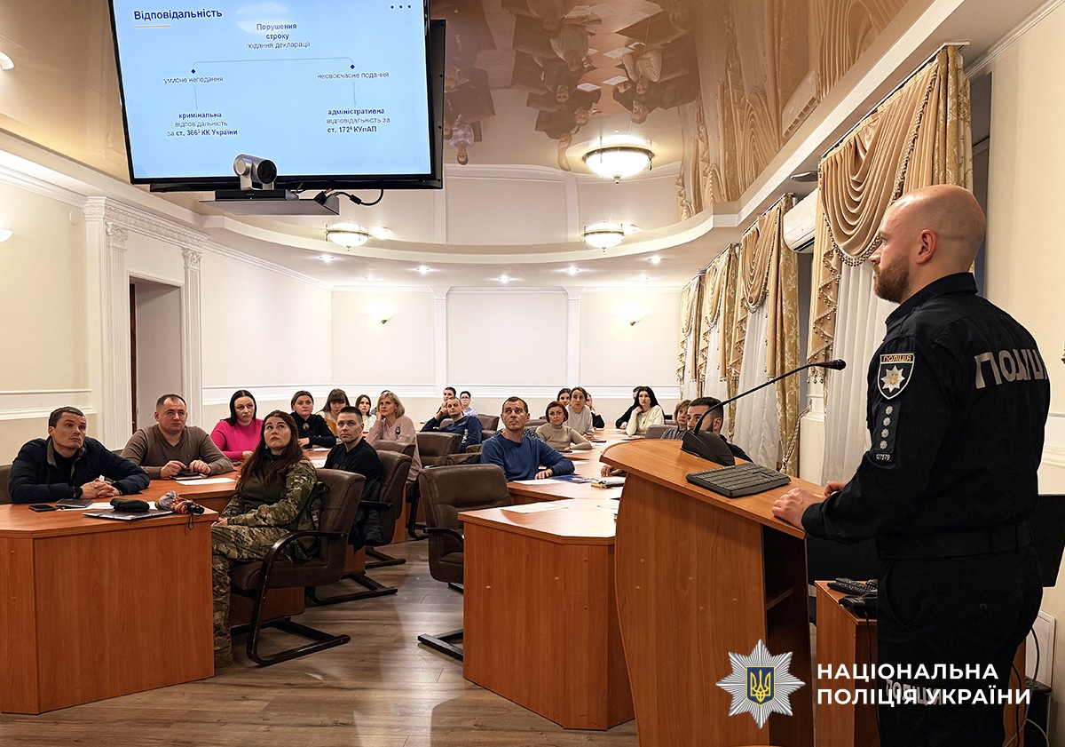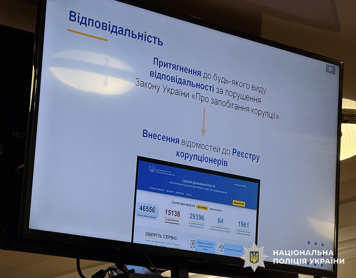 Під час занять поліцейські обговорили питання дотримання антикорупційного законодавства, типові ризики та способи їх запобіганню та важливість своєчасного повідомлення про можливі порушення. Не оминули і тему стандартів етичної поведінки поліцейських. Учасники ознайомилися з теоретичними аспектами та розглянути практичні ситуації, що можуть виникати під час виконання службових обов’язків.