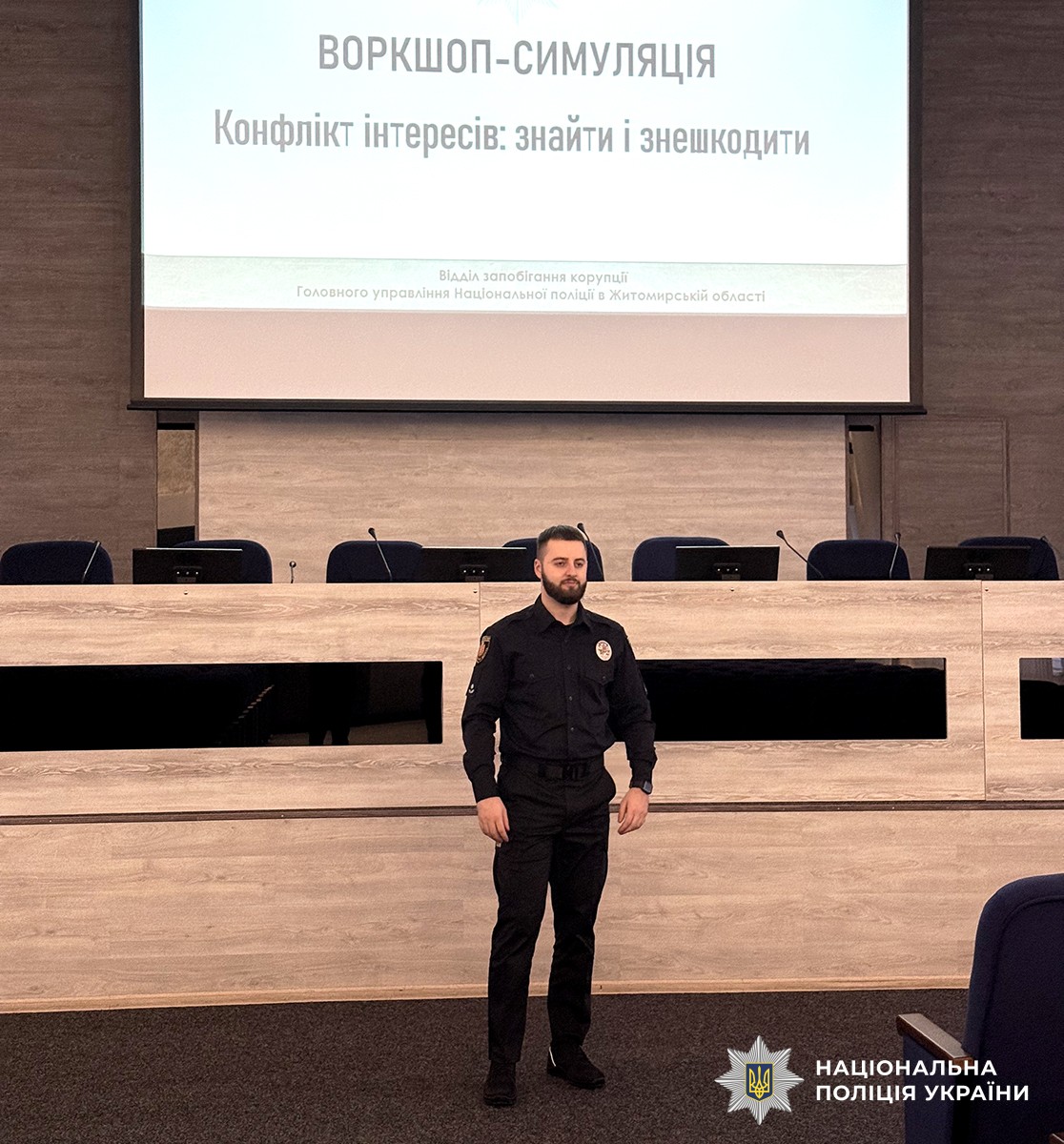 4 та 5 грудня працівники відділу запобігання корупції Головного управління Національної поліції в Житомирській області провели навчальні заходи, спрямовані на підвищення обізнаності поліцейських щодо стандартів доброчесності та запобігання корупційним проявам.