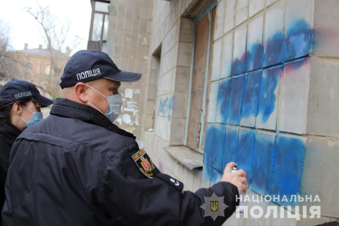 Правоохоронці замалювали розміщені в громадських місцях міста написи з назвами сайтів із розповсюдження заборонених речовин.