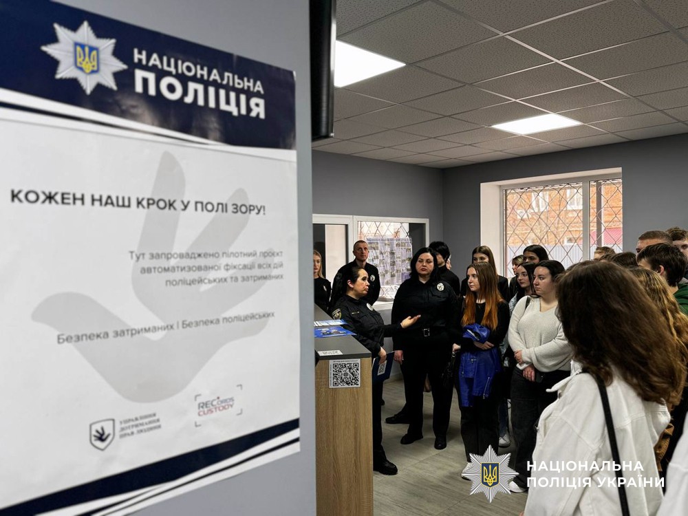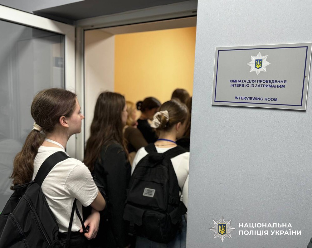 Вона показала молоді службові приміщення, до яких доставляються затримані та кімнати, що призначені для інших слідчих дій. Екскурсію розпочали з кімнати інтерв’ювання, у якій інспекторка проводить бесіди з затриманими. Далі відвідали спеціально облаштовані кімнати, що призначені для конфіденційного спілкування затриманого з адвокатом і для проведення слідчих дій. Наостанок візитери мали змогу побувати у кімнатах для затриманих. Правоохоронці пояснили, що всі службові приміщення оснащені відеокамерами, і все що відбувається — завжди фіксується та зберігається в архіві.