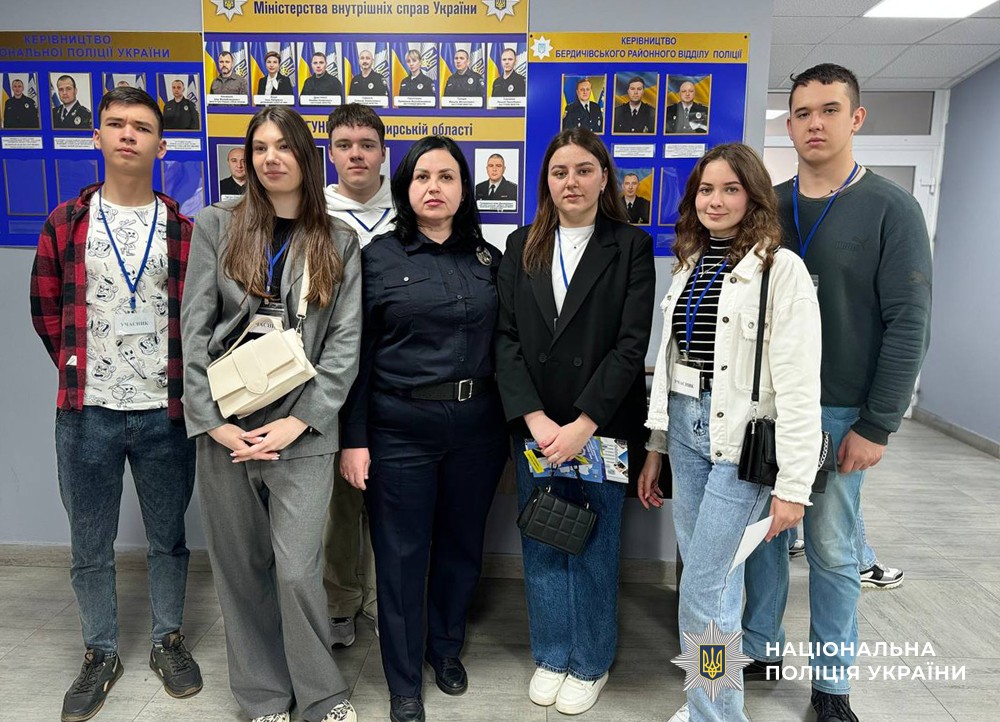 1 квітня у Бердичівському райвідділі поліції відбулася пізнавальна зустріч для молоді. До заходу долучилися випускники місцевих гімназій та ліцеїв, які зацікавлені у набутті знань щодо їх прав, обов'язків та особистої безпеки. А дехто з екскурсантів вмотивовано розглядає службу у поліції як вибір майбутньої професії.