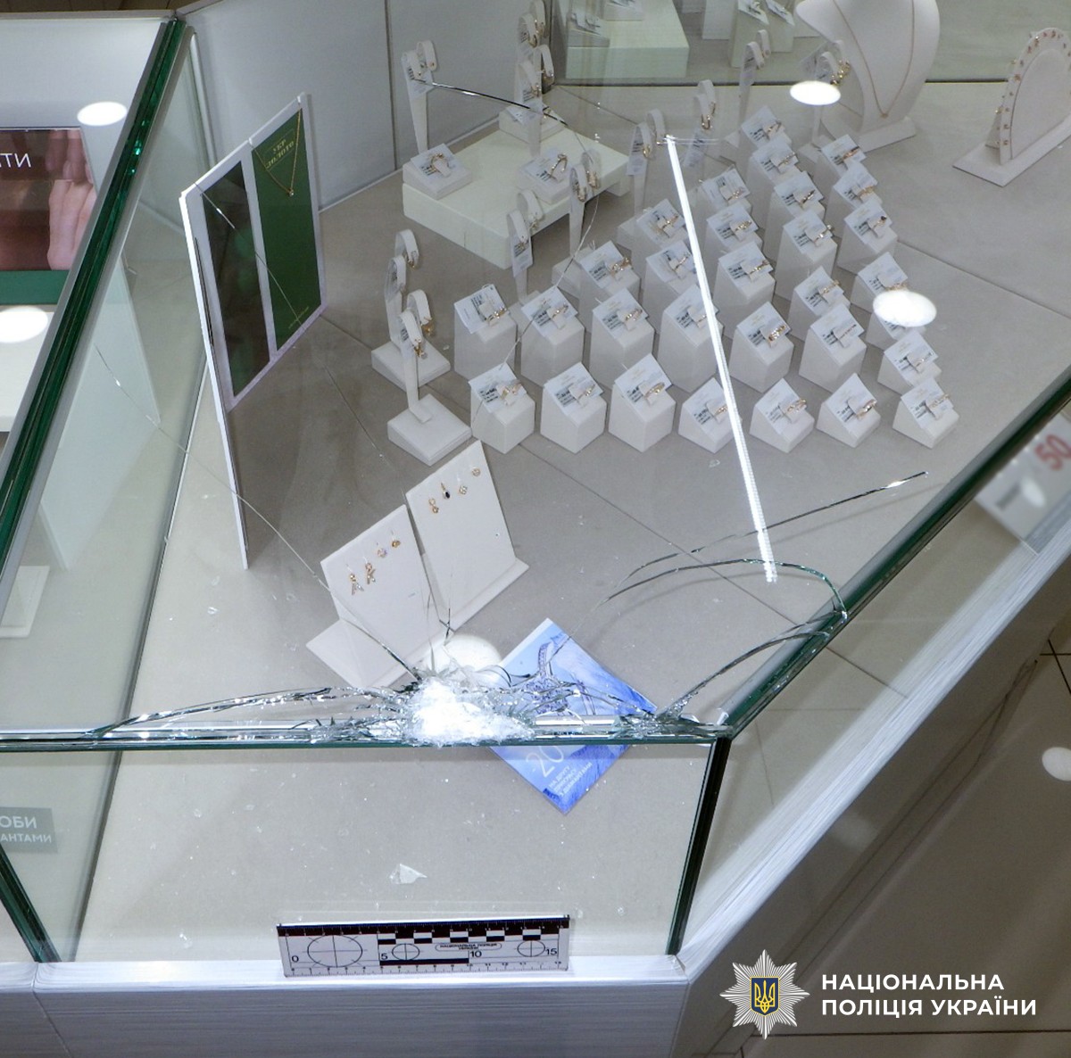 Увечері 9 травня один з відвідувачів крамниці розбив вітрину та намагався викрасти вироби із золота. Чоловіка затримала охорона.