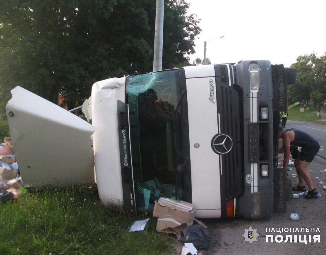 Попередньо, водій вантажного автомобіля «Volvo», 25-річний житель Тернопільської області, рухаючись автодорогою Виступовичі - Житомир – Могилів-Подільський, не впорався з керуванням та виїхав на смугу зустрічного руху. Там сталося зіткнення з автомобілем «Mercedes Benz Tego» під керуванням 27-річного вінничанина, який від удару перекинувся.