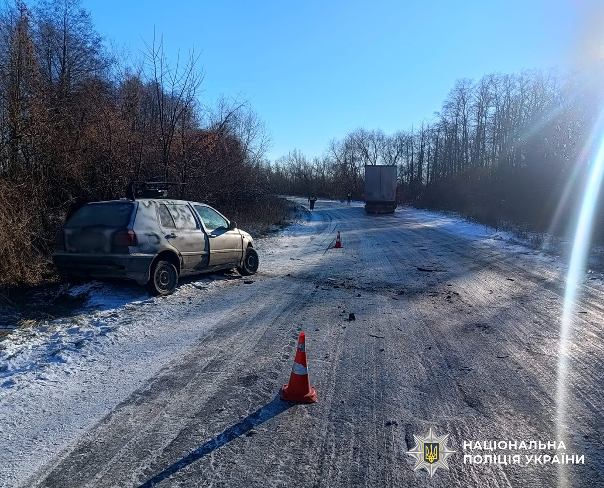 Попередньо встановлено, що близько 11:50 вдбулося зіткнення автомобіля Volkswagen Golf, під керуванням жительки с. Кикова, з зустрічною вантажівкою Renault Magnum, за кермом якої перебував житель м. Баранівки.