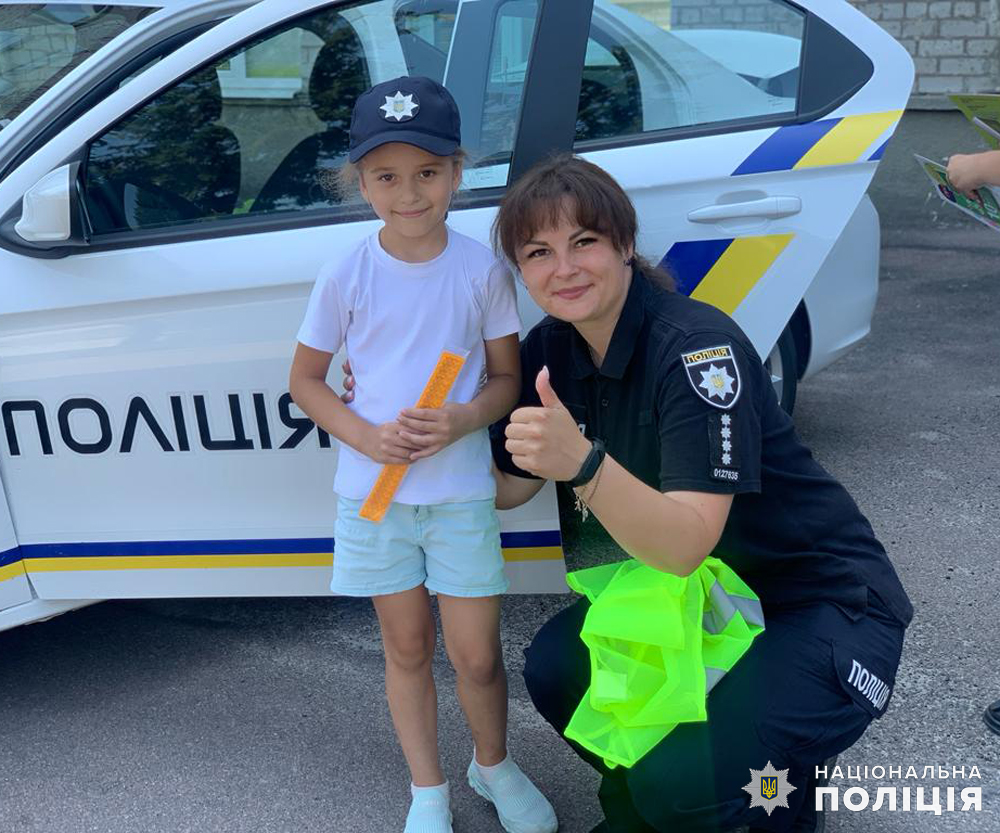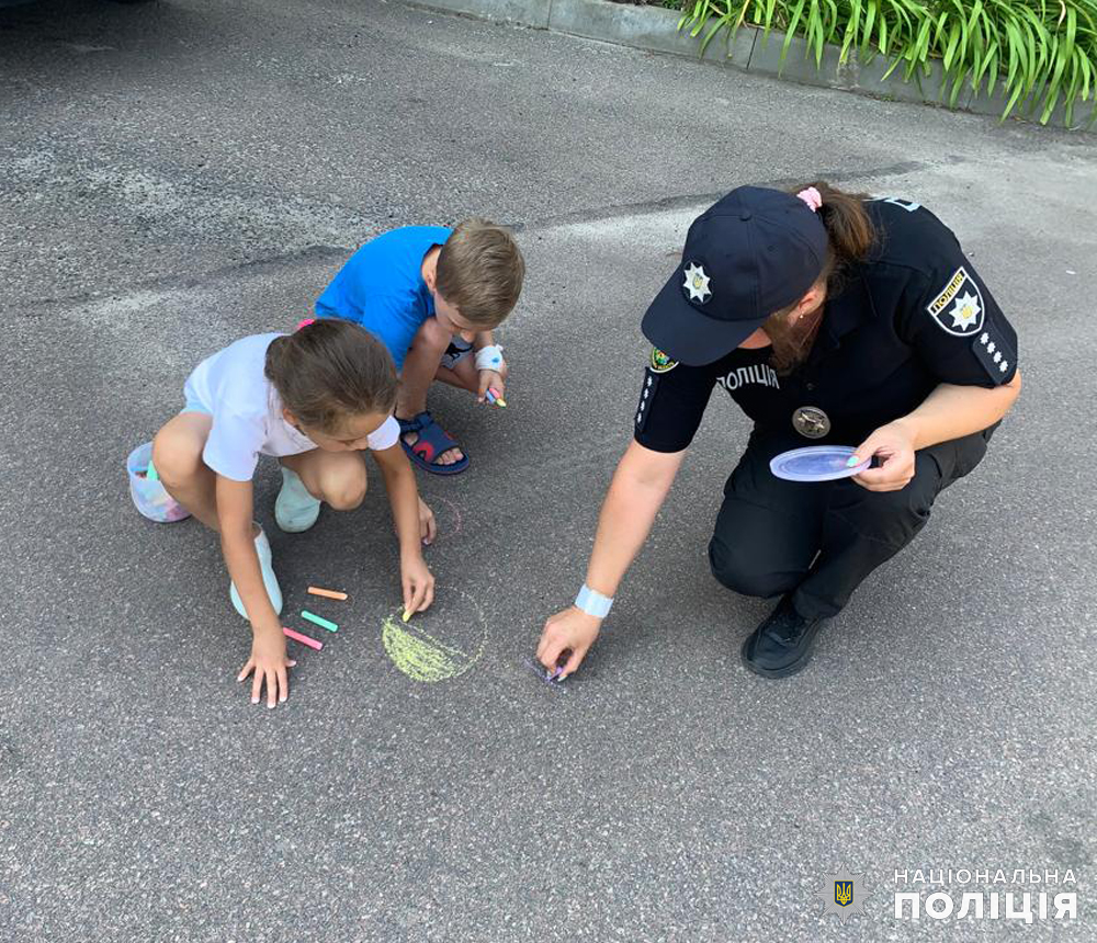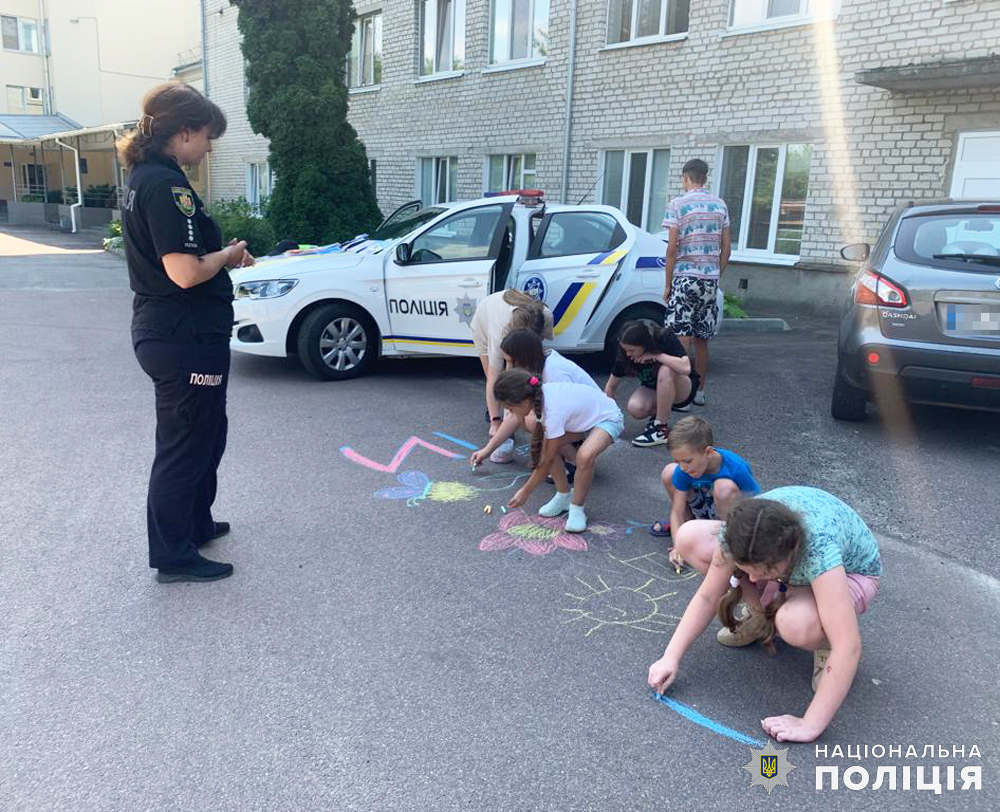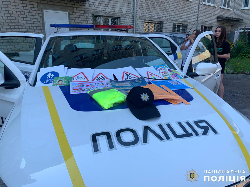 Наприкінці зустрічі присутні взяли участь у конкурсі малюнку на асфальті, отримали кваліфіковані відповіді на свої запитання, приміряли елементи амуніції поліцейських та зробити пам’ятні фото у службовій автівці. Правоохоронці ж на згадку про такий незвичний візит залишили дітям світловідбивні стрічки у подарунок та розповіли про необхідність виокремлення себе у темряві під час руху поблизу автошялхів.