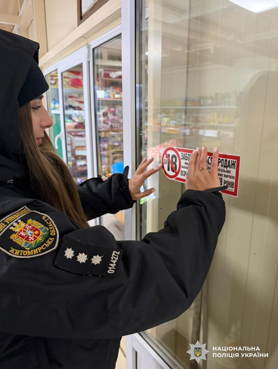 Днями інспектори служби освітньої безпеки Коростенського райуправління поліції провели профілактичні відпрацювання місцевих крамниць та нагадали про відповідальність за продаж алкоголю та тютюну дітям.