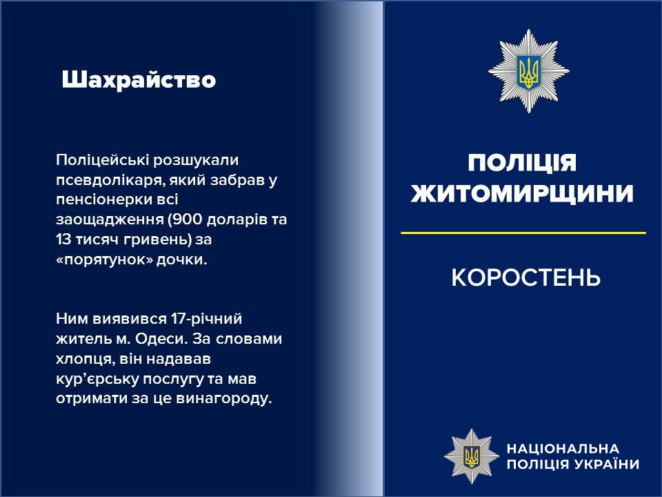 У Коростені поліцейські розшукали псевдолікаря, який забрав у пенсіонерки всі заощадження за «порятунок» дочки