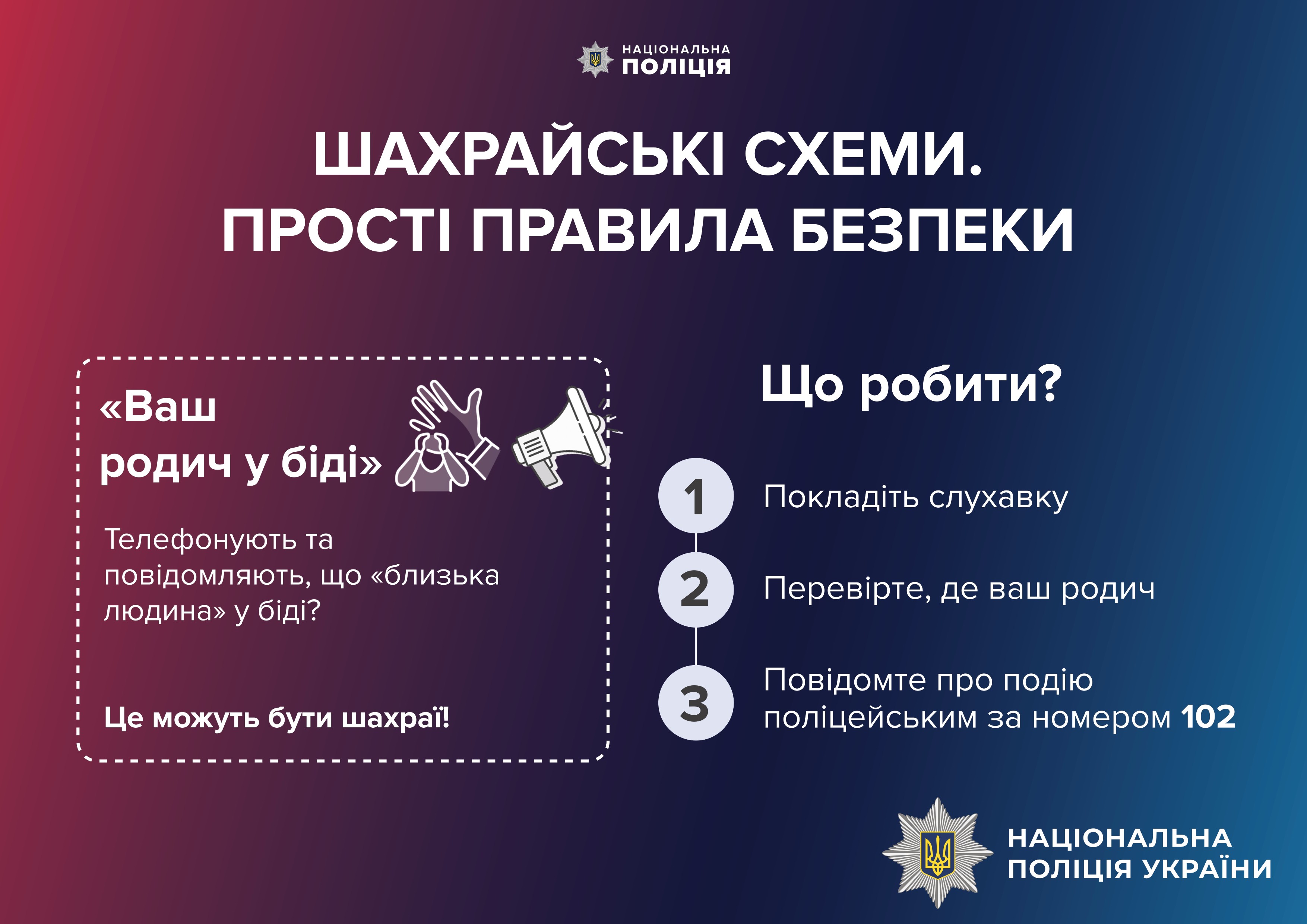 Лише після цього вона, заспокоївшись, здогадалась зателефонувати доньці. Тоді й дізналася, що насправді вона не потребує ніякого лікування та зрозуміла, що віддала гроші ошуканцям.