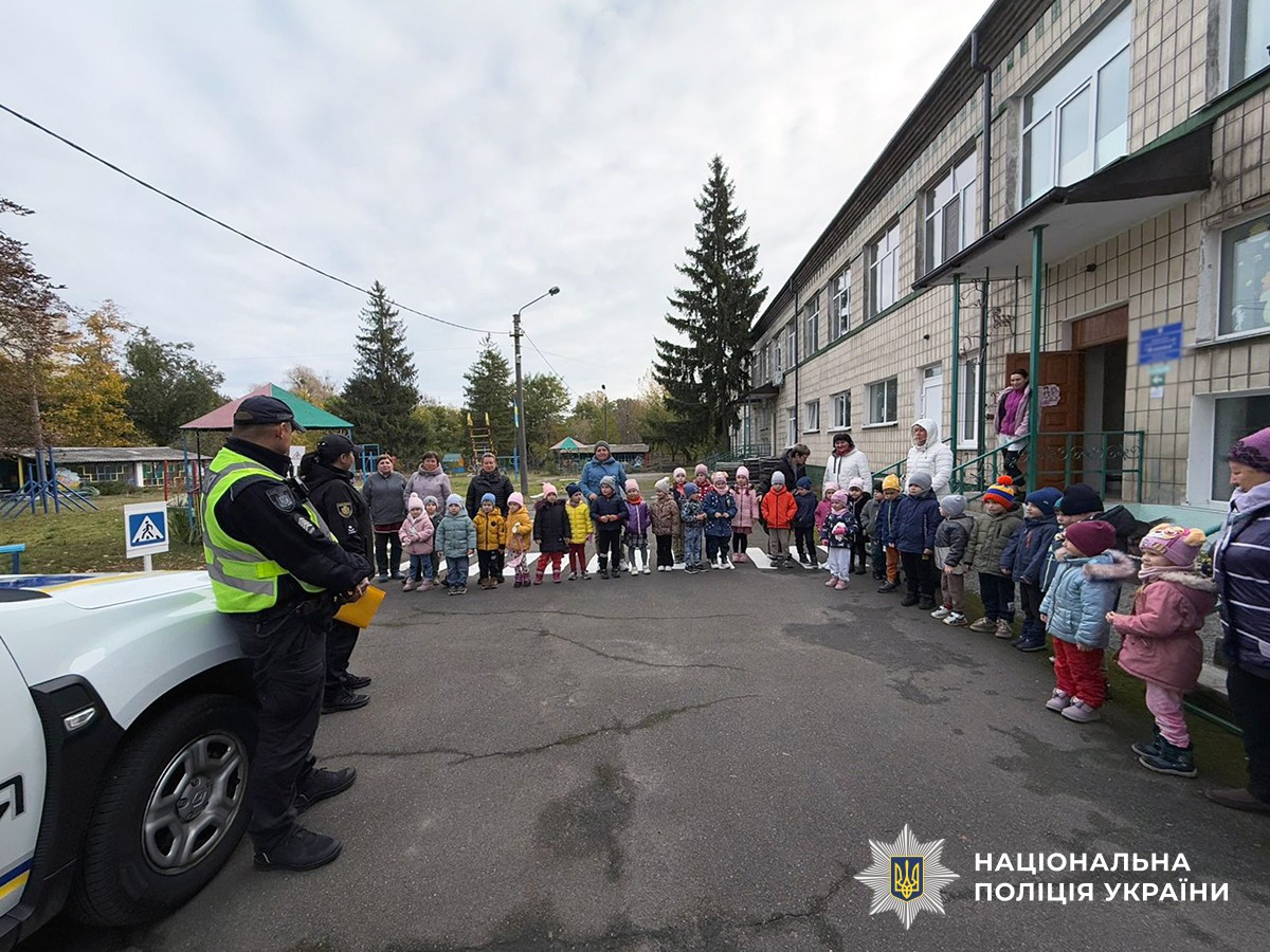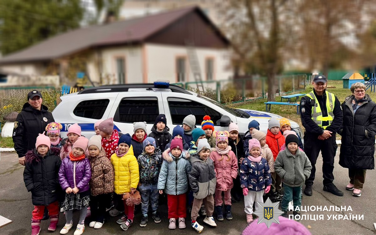 Під час зустрічі поліцейські в ігровій формі розповіли дітям, як правильно переходити проїжджу частину, що означають сигнали світлофора та дорожні знаки, а також чому варто бути уважними поблизу дороги. Малята охоче відповідали на запитання, ділилися власними спостереженнями та демонстрували гарні знання правил безпеки.