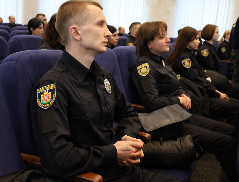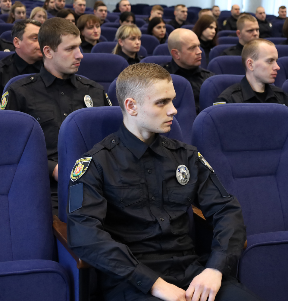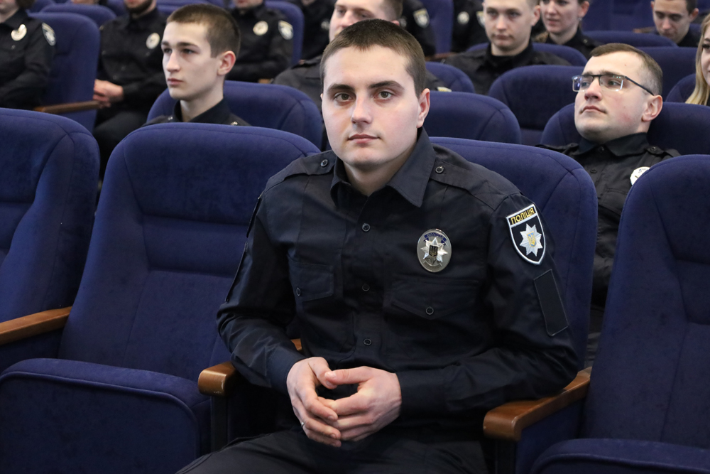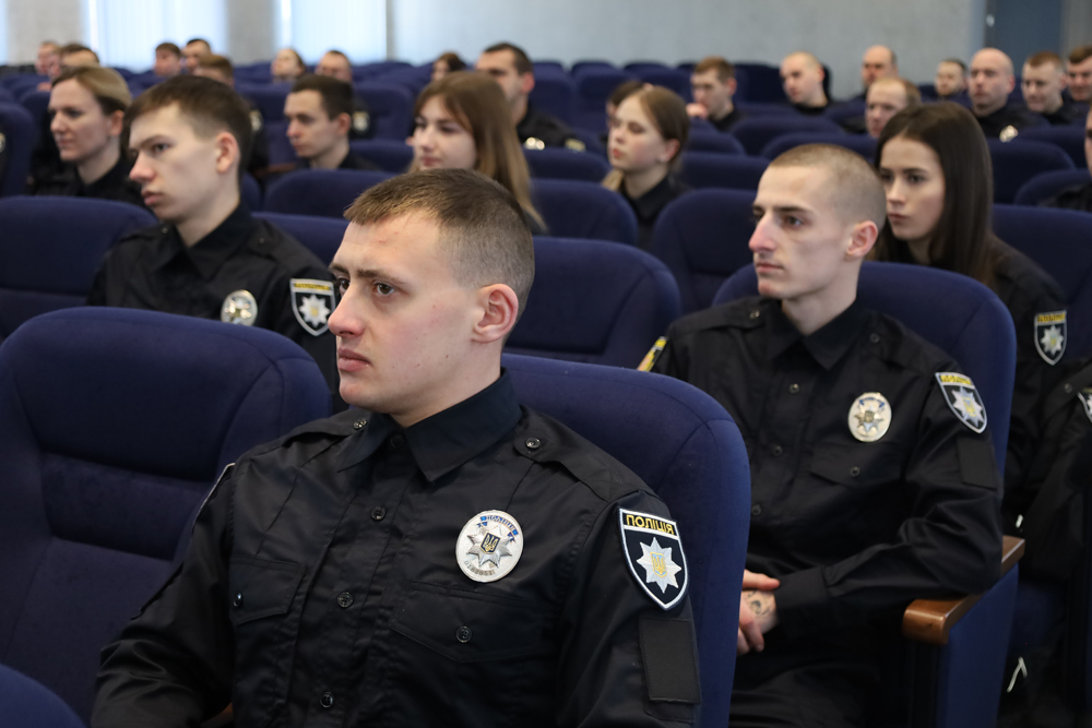 Начальник Управління кадрового забезпечення ГУНП Дмитро Слівінський також побажав присутнім цікавого навчання та успішного складання підсумкових іспитів, аби їх мета стати поліцейськими повністю реалізувалась.