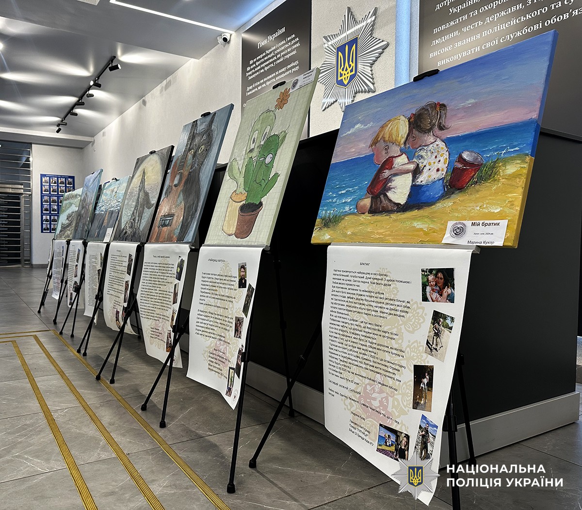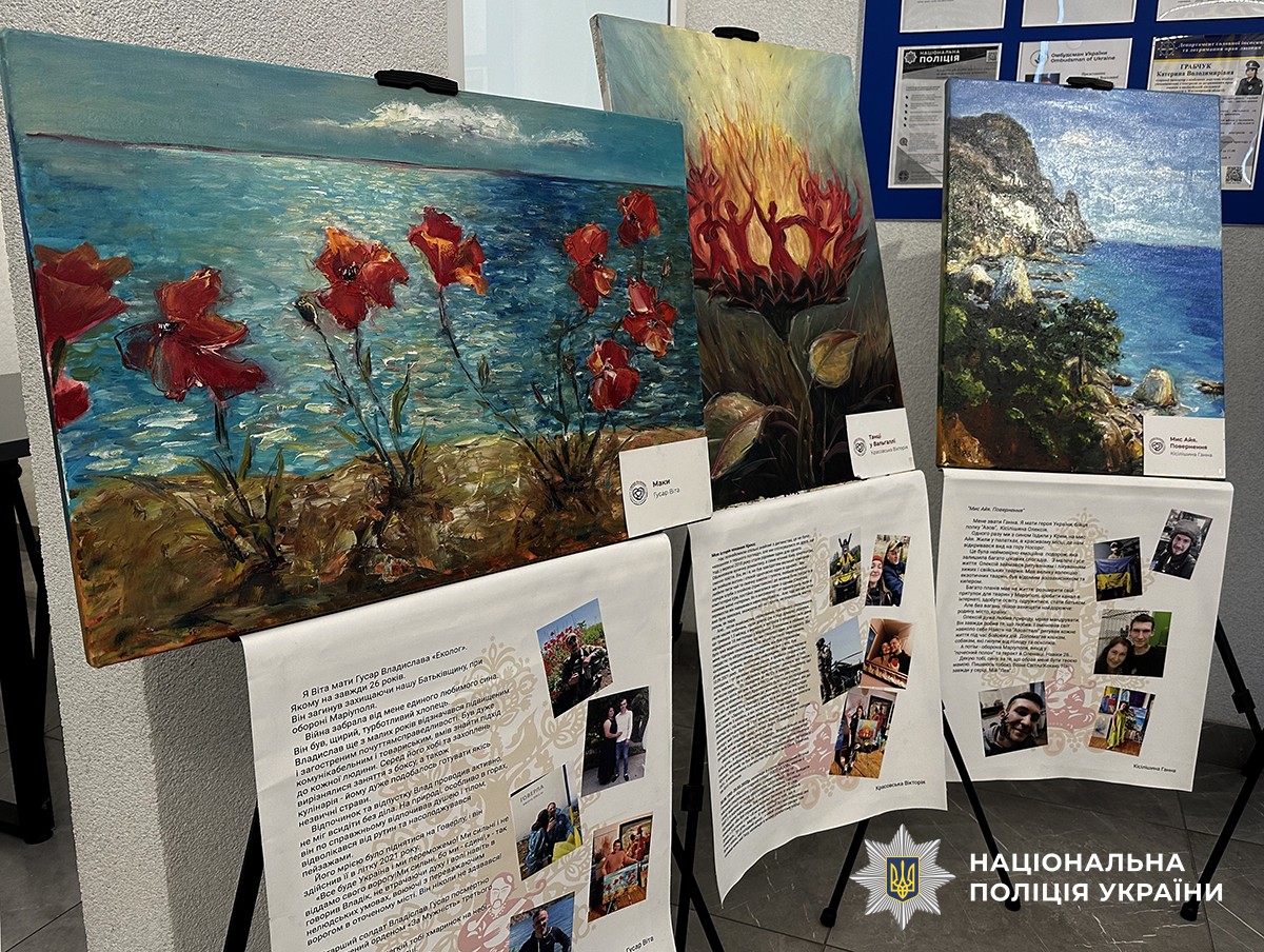 У приміщенні Головного управління Національної поліції в Житомирській області представили мистецьку експозицію, що поєднує особистий біль втрати, любов і силу незламності. Картини, написані близькими полеглих захисників Маріуполя, стали своєрідним свідченням їхніх переживань та способом збереження пам’яті про рідних.