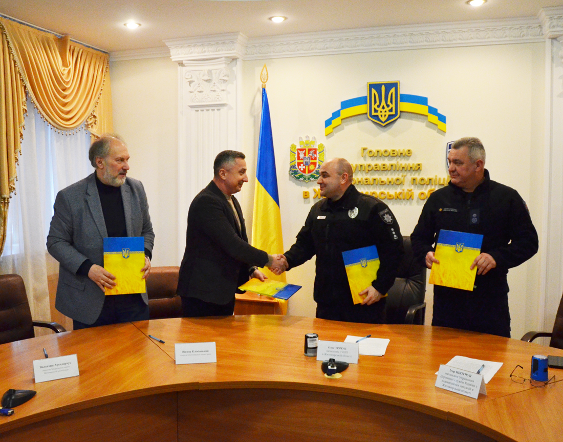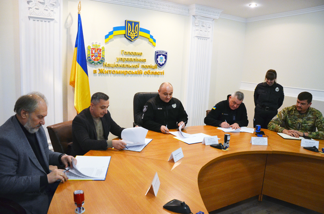 Меморандум про це 7 лютого в Головному управлінні Нацполіції області підписали правоохоронці, рятувальники, освітяни та представники громади м. Житомира.