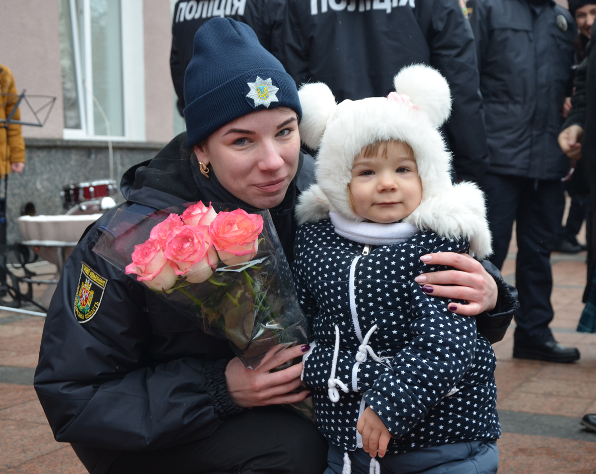 З квітами та щирими словами вітань поліцейських поздоровили їх рідні та друзі.