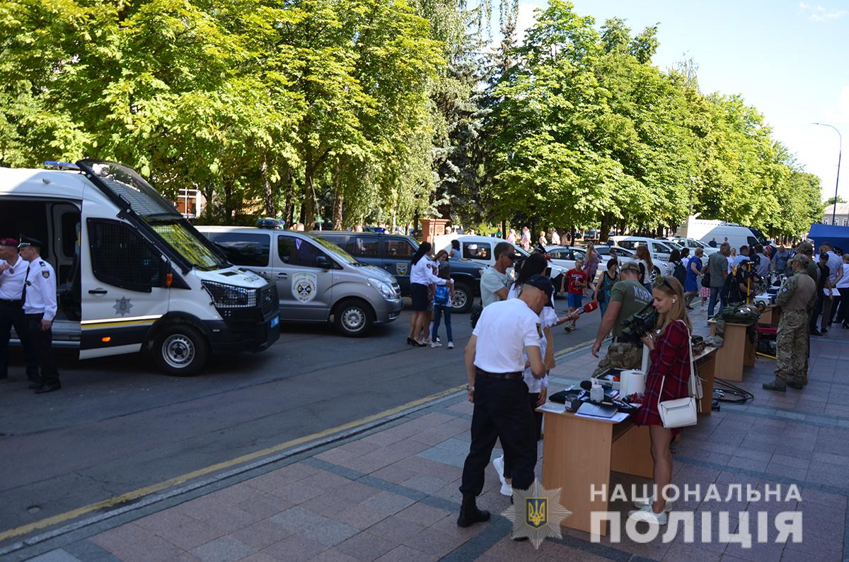 На Старому бульварі обласного центру біля адміністративної будівлі Головного управління Національної поліції України в області поліцейські організували виставку автотехніки та засобів індивідуального захисту, які використовують під час виконання службових повсякденних завдань і в ході спеціальних операцій. Усім бажаючим поліцейські розповідали про свою діяльність.