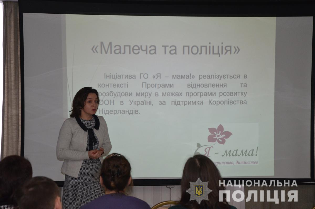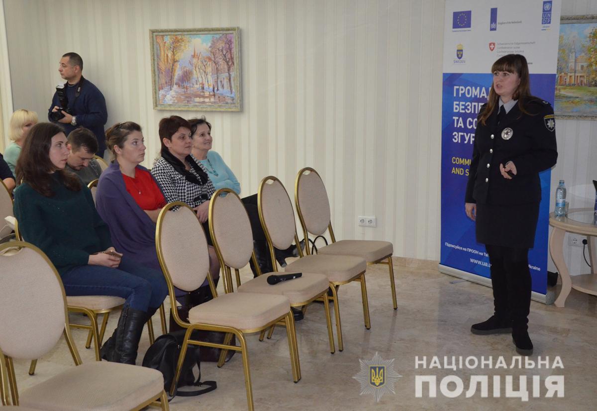 Розробку проектів і реалізованих практик концепції Community policing представили окремі громадські активісти. Зокрема, представники ГО «Я – мама!» розповіли про низку проведених спільних заходів із патрульними поліцейськими та артистами Житомирського лялькового театру серед молодших школярів загальноосвітніх закладів області та обласного центру.