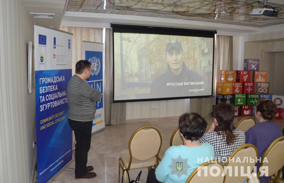 А представник організації «Репортер Про» презентував присутнім свій нещодавній медіа-проект «Про мою поліцію», який дозволяє глядачам зазирнути у будні поліцейських різних підрозділів, познайомитись із конкретними особистостями і їх людськими якостями. Для користувачів соціальних мереж доступні уже кілька відзнятих відеосюжетів, зокрема про патрульного, спецпризначенця та дільничних офіцерів в ОТГ та обласному центрі.