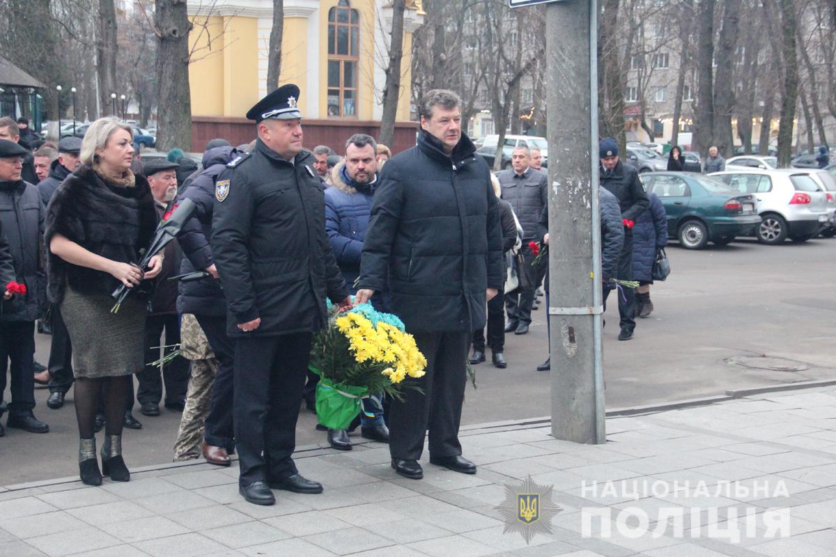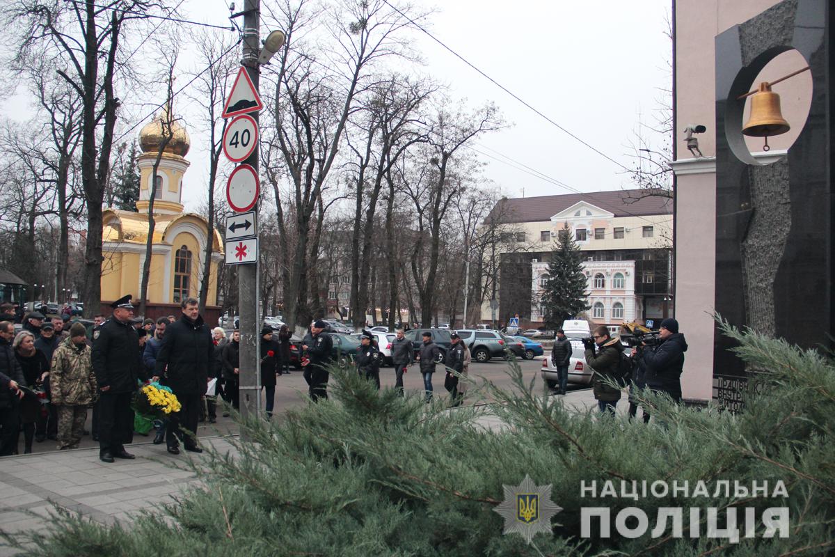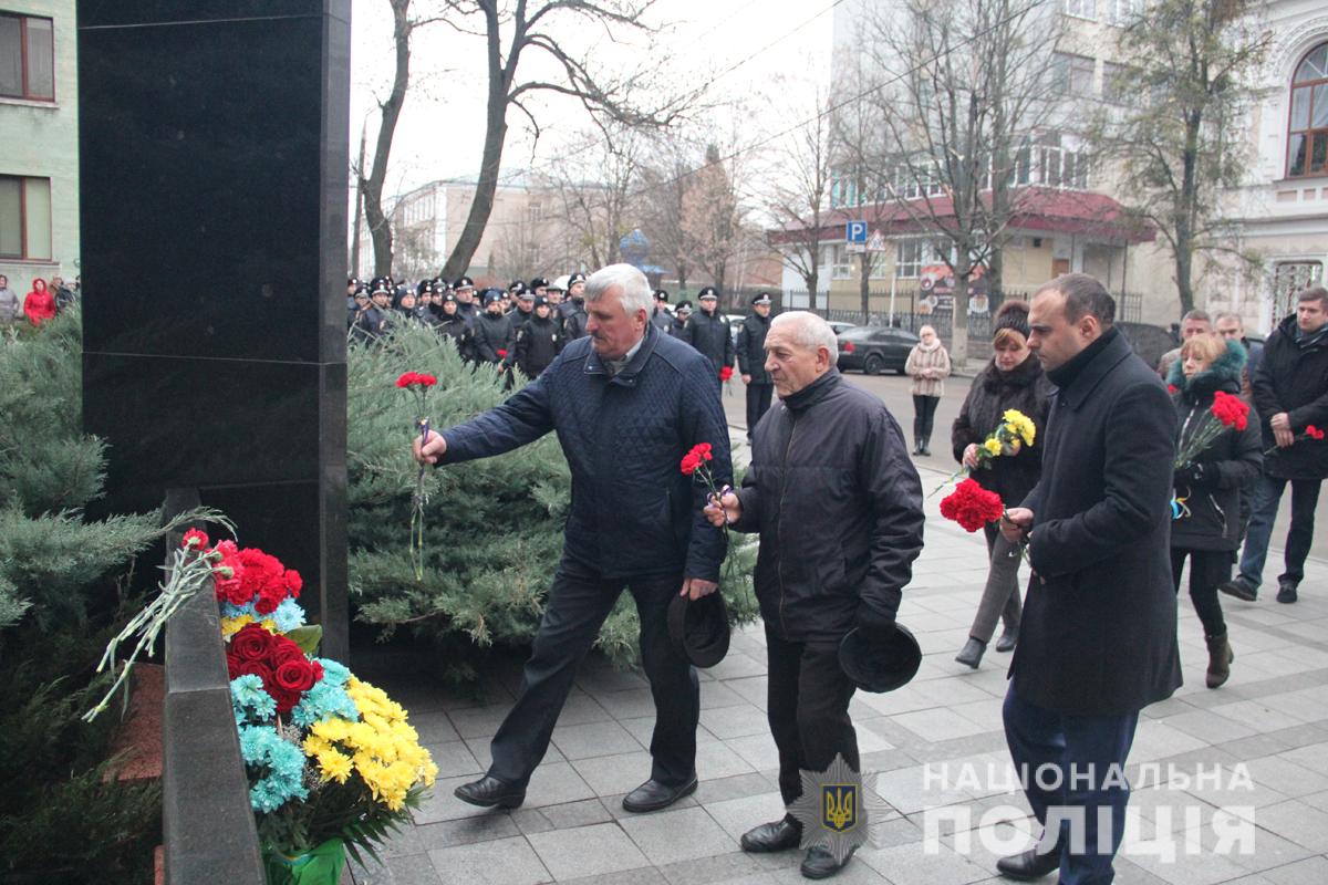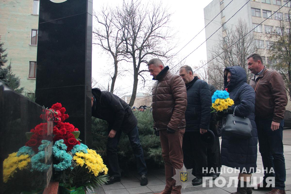13 грудня керівники області, міста та поліції Житомирщини, ветерани органів внутрішніх справ, представники громадськості, поліцейські, курсанти навчального центру та військовослужбовці поклали квіти до обеліска пам’яті загиблим від чорнобильського лиха. Також очільник ГУНП вручив ліквідаторам Подяки відомства та Житомирських обласної і міської рад.