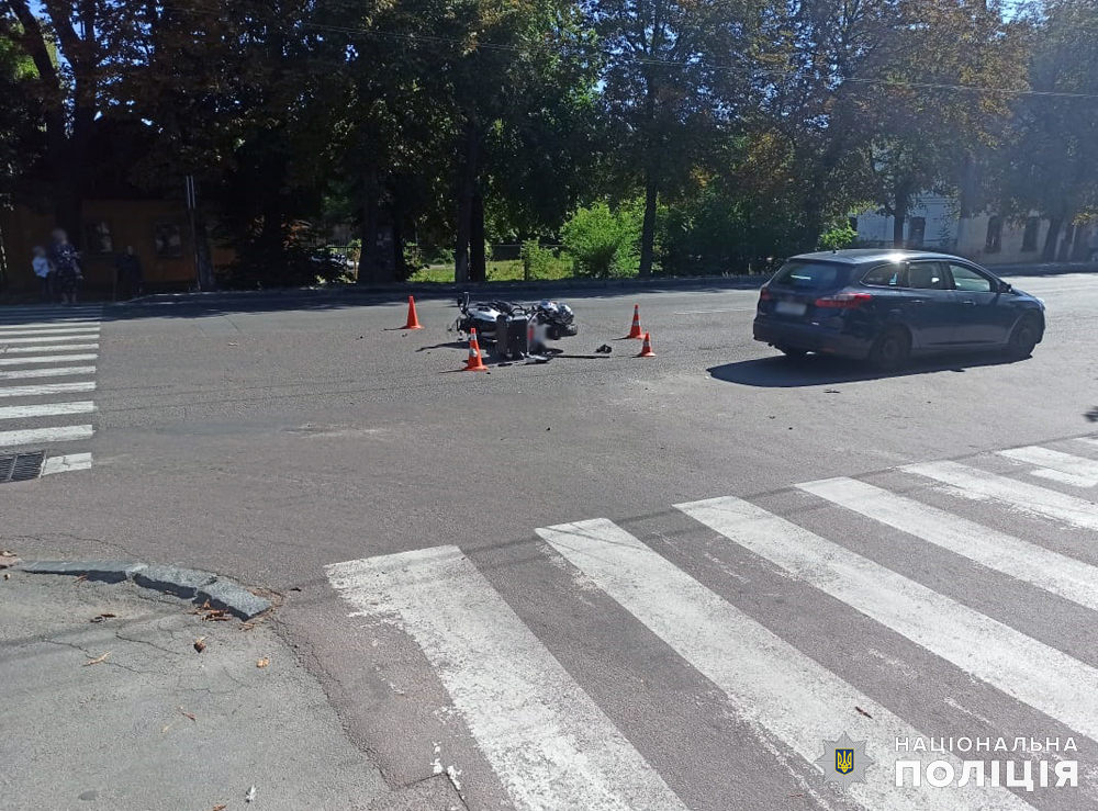 У Житомирі не розминулися мотоцикл та легковик: поліція проводить розслідування