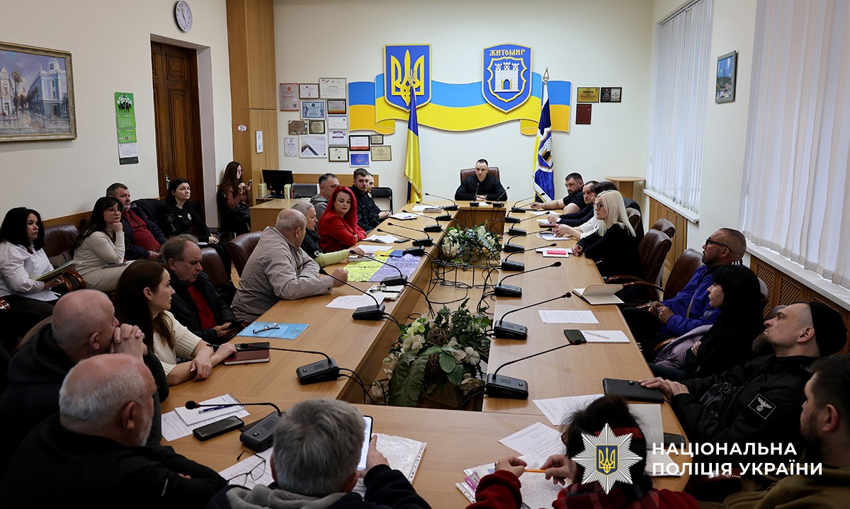 У зустрічі взяли участь начальник ГУНП в Житомирській області Олександр Ковтун, його помічник, ветеран війни Кирило Гиндич, керівники Управлінь кадрового забезпечення та превентивної діяльності поліції області Мирослава Моніч і Зейнал Насіров, а також начальник управління у справах ветеранів війни Андрій Забігайло, представники громадських організацій і ветерани. Очолив нараду заступник міського голови з питань діяльності виконавчих органів ради Житомирської міської ради Олег Смаль.