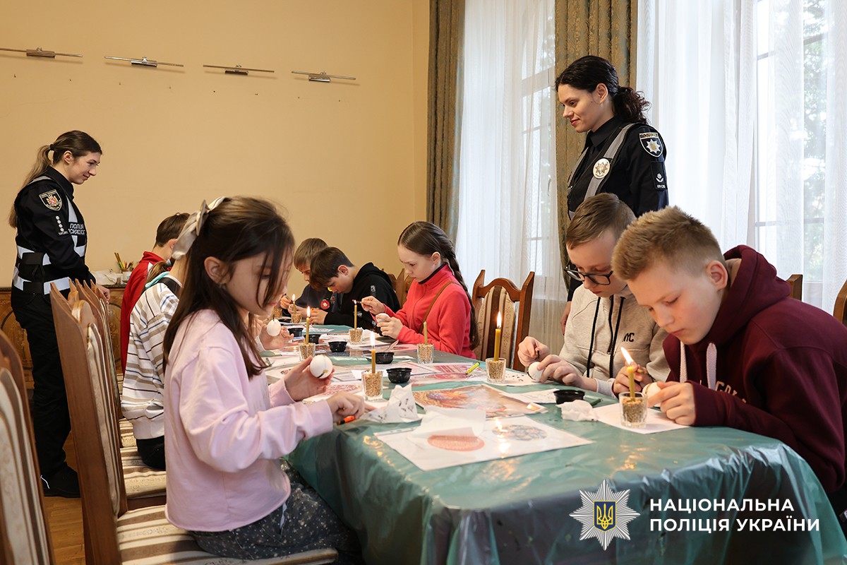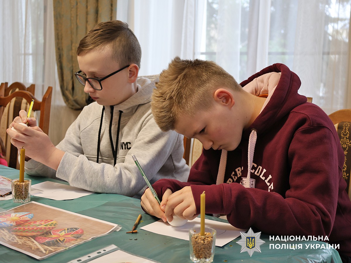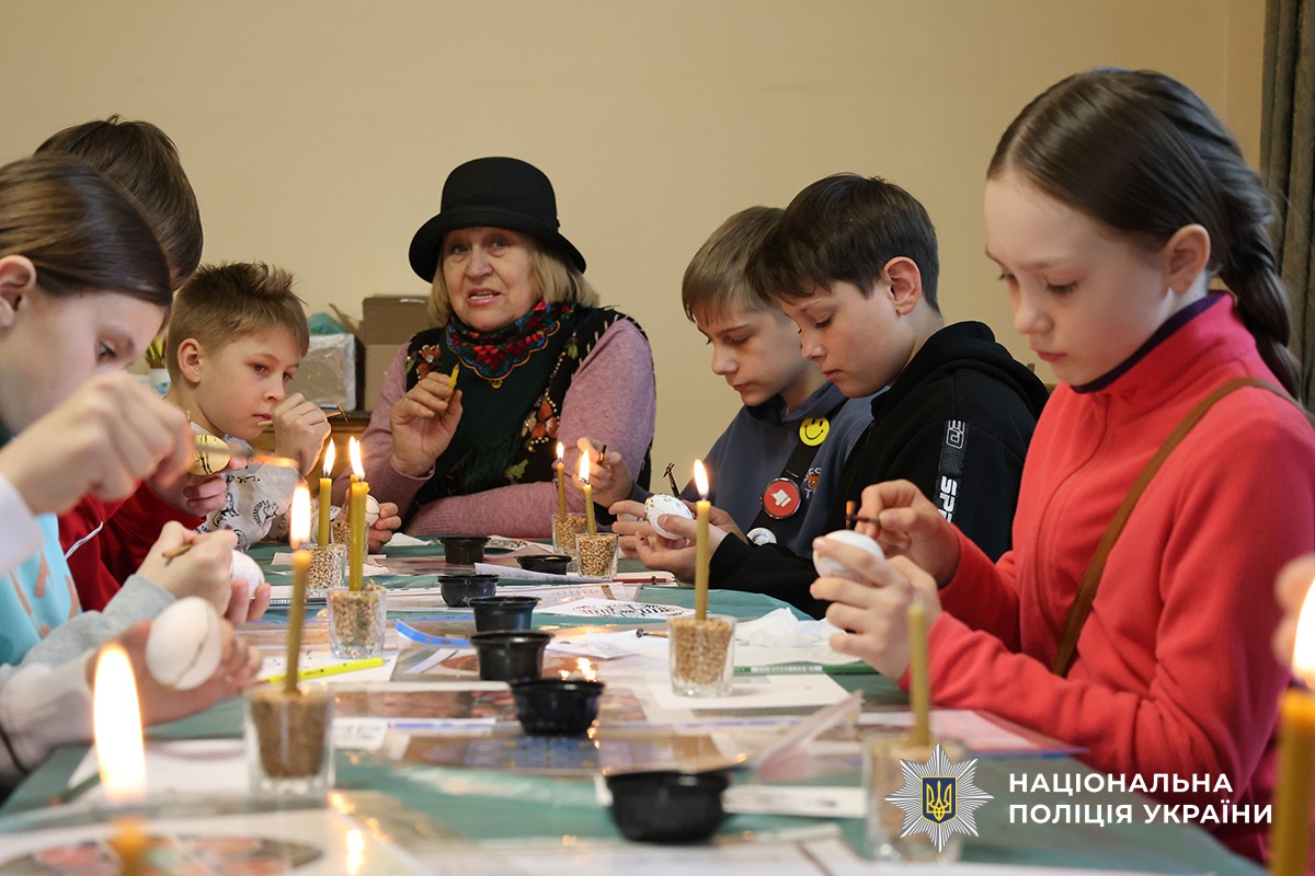9 квітня на традиційний розпис писанок зібралися діти безвісти зниклих, загиблих та діючих поліцейських, які нині виконують бойові завдання, захищаючи Україну. Фахівчині відділу психологічного забезпечення УКЗ ГУНП підтримували юних писанкарів на кожному етапі, створюючи безпечний простір для взаємодії.