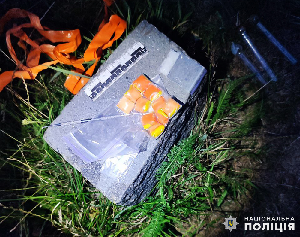Як з’ясувалось, він вже встиг заховати частину партії наркотиків у лісосмузі неподалік. Відтак на місці, вказаному чоловіком, поліцейські виявили ще понад 40 пакунків з кристалічною речовиною.