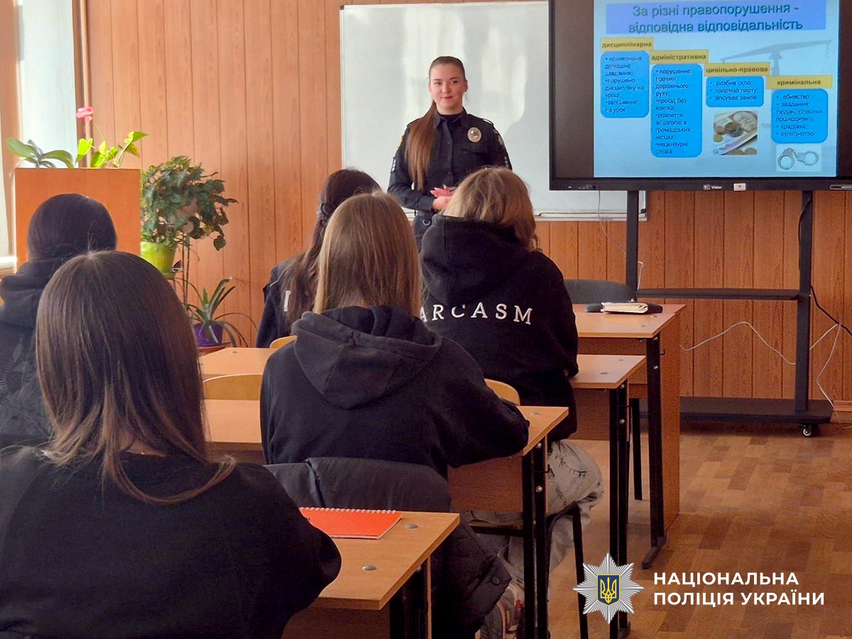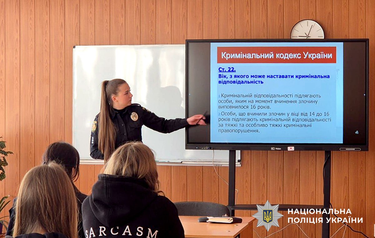 Ювенальні інспектори, використовуючи життєві приклади, роз’яснили присутнім про види відповідальності неповнолітніх. Також поліцейські ознайомили студентів зі специфікою щоденної превентивної роботи, а також припинення правопорушень, вчинених дітьми та відносно них.