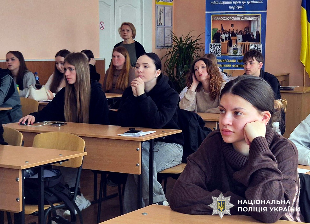 Днями поліцейські Житомирського районного управління поліції №1 провели пізнавальний захід зі студентами спеціальності «Правоохоронна діяльність» у місцевому торговельно-економічному коледжі.