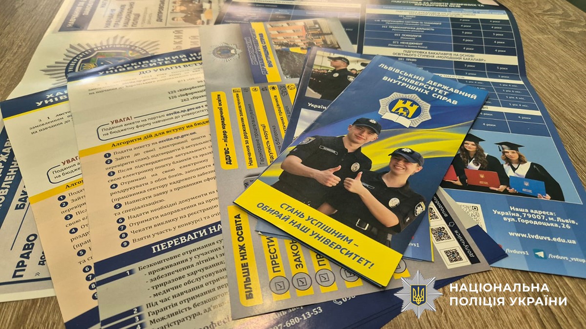 Гості ознайомили молодь з умовами конкурсного відбору на службу до лав Національної поліції та вручили буклети з інформацією про заклади вищої освіти, що підготовку правоохоронців.