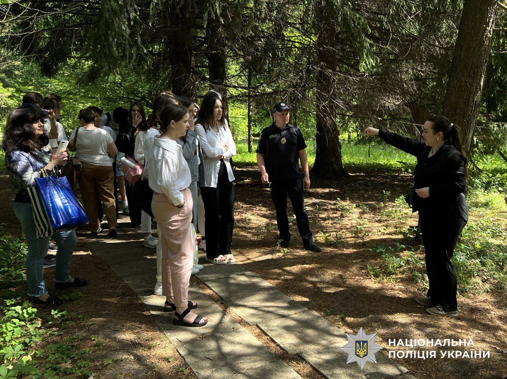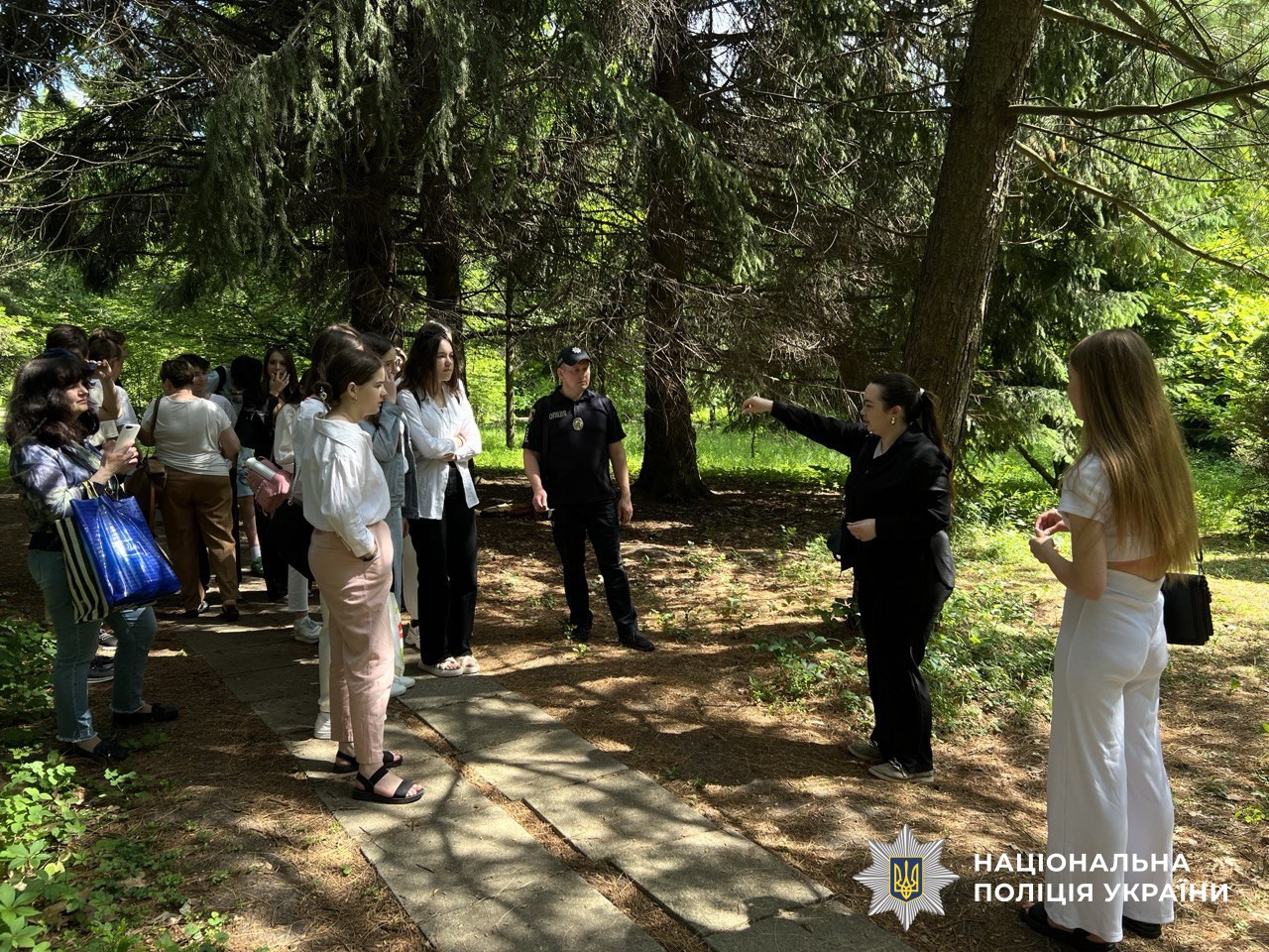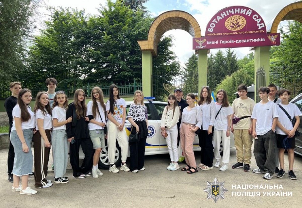Ювенальні поліцейські ініціювали такий захід за участі студентів Поліського національного університету. Вони зустріли учнів 8 класу місцевого ліцею та розповіли про унікальні та цікаві рослини та фауну саду.