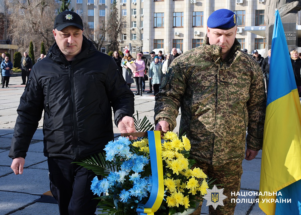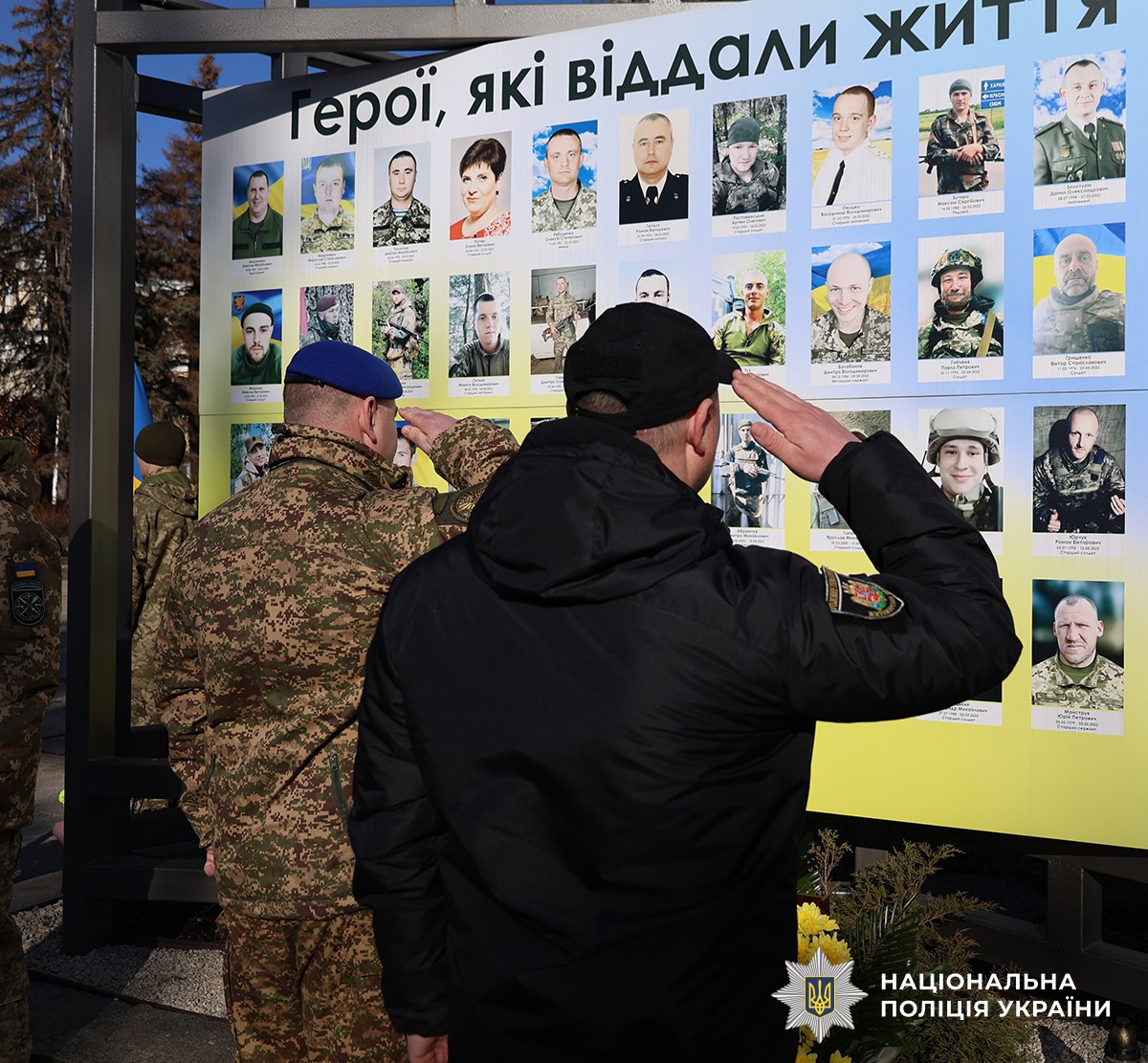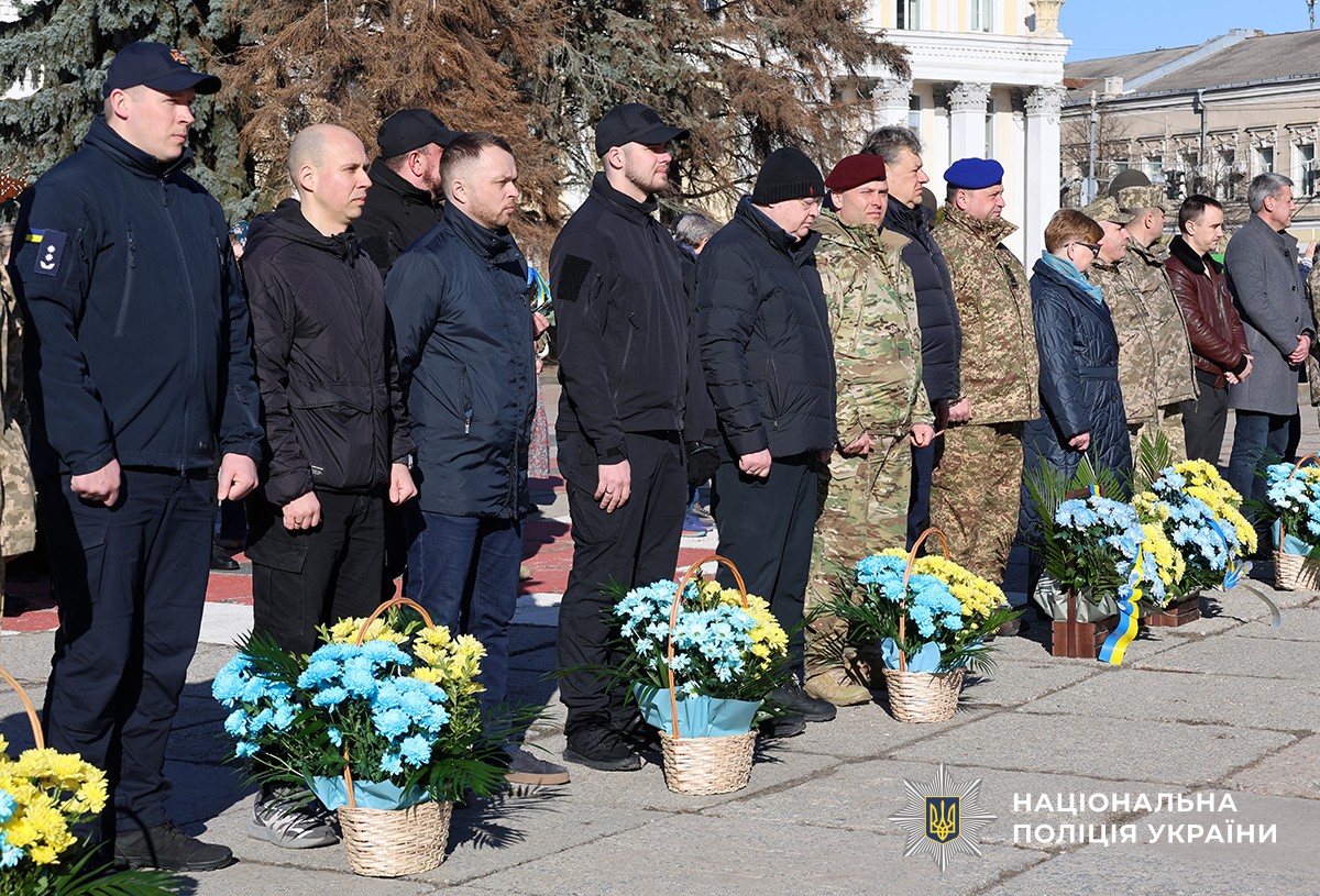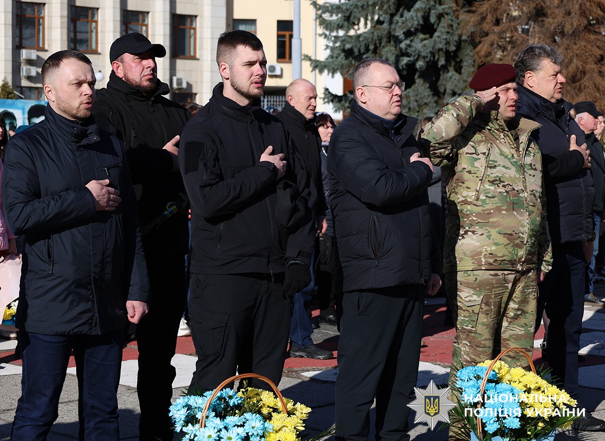 На Алеї Героїв зібралися військовослужбовці, ветерани, представники влади та силових структур, правоохоронці й містяни. Учасники заходу схилили голови у хвилині мовчання, віддаючи шану тим, хто за власним покликом пішов боронити рідну землю.