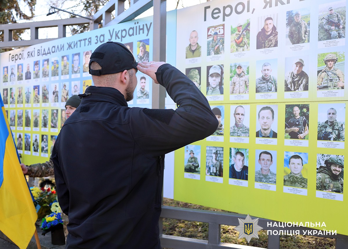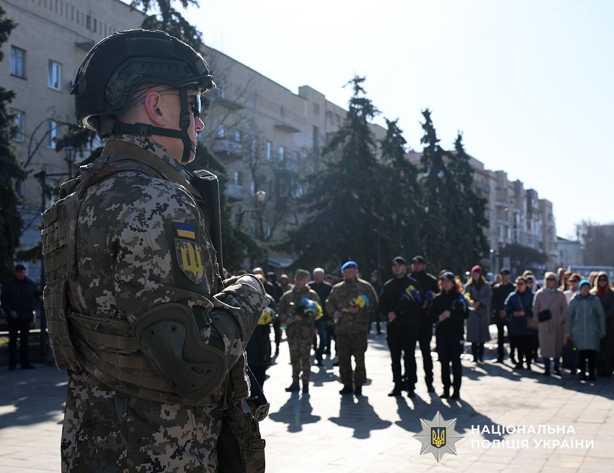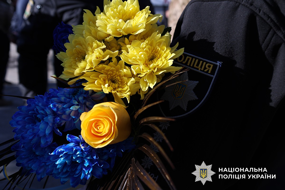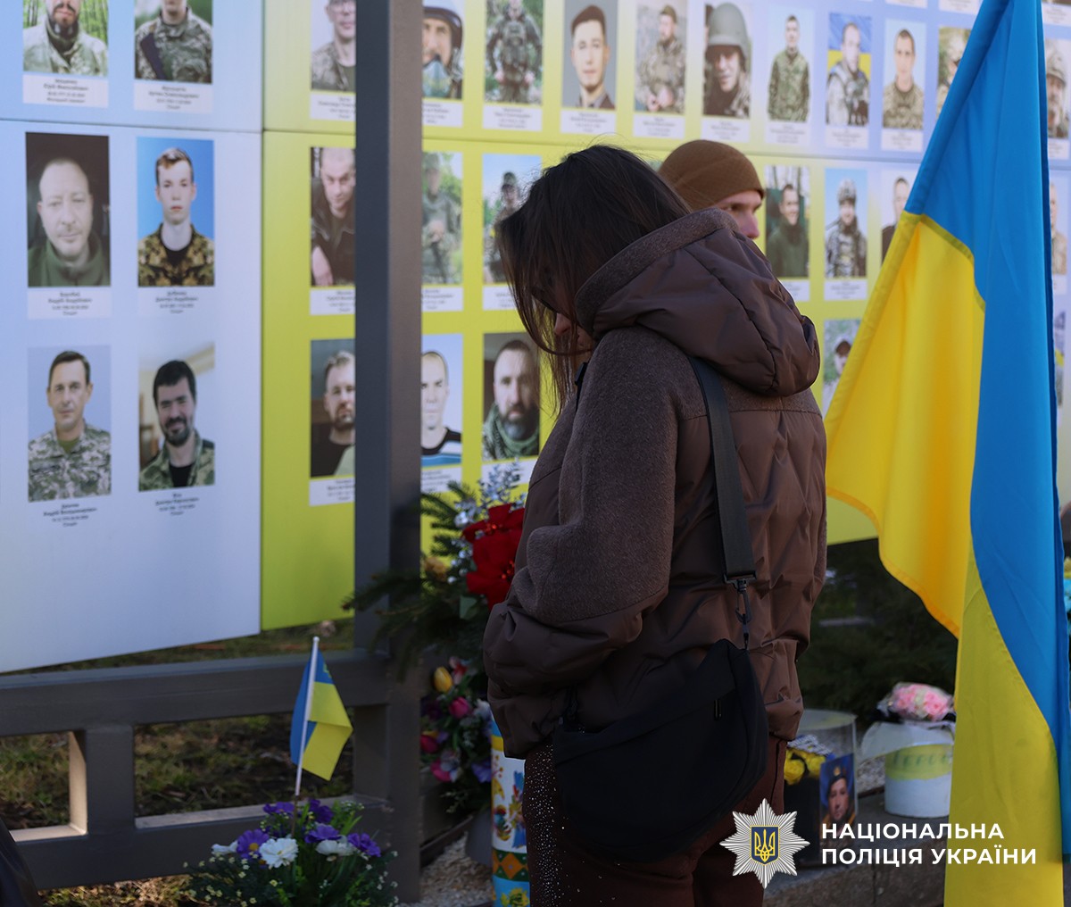 Поліцейські разом із присутніми поклали квіти також до пам’ятного знака захисникам України у війні з російським агресором.