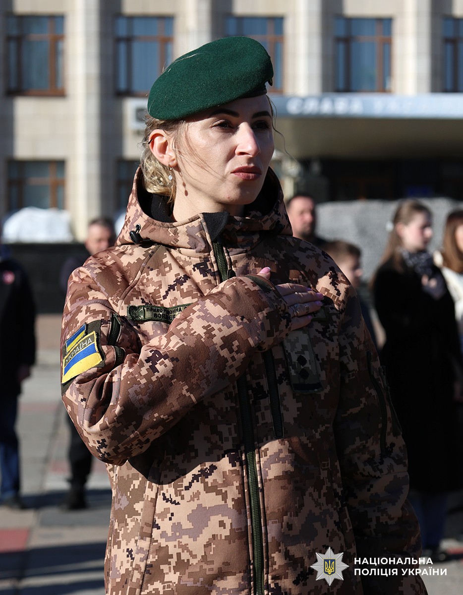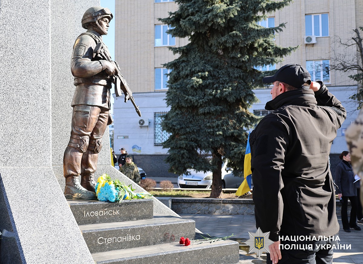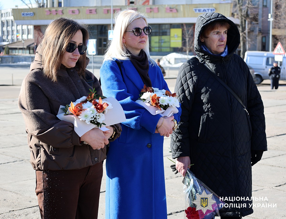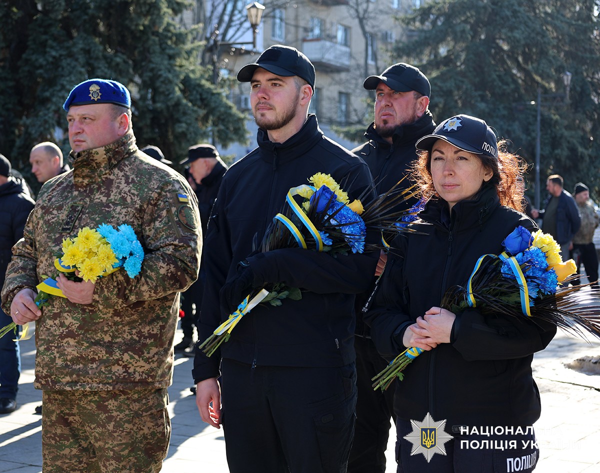 Поліцейські разом із присутніми поклали квіти також до пам’ятного знака захисникам України у війні з російським агресором.