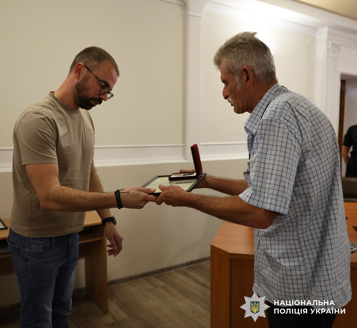 Начальник ГУНП в Житомирській області Олександр Ковтун, заступник начальника обласної військової адміністрації Олександр Федько, начальник управління у справах ветеранів війни Житомирської міської ради Андрій Забігайло та заступник начальника відділу організації координаційної роботи УКЗ ДПОП ОШБ НПУ «Лють» Вадим Литковський вручили сім’ям загиблих бійців державні нагороди.