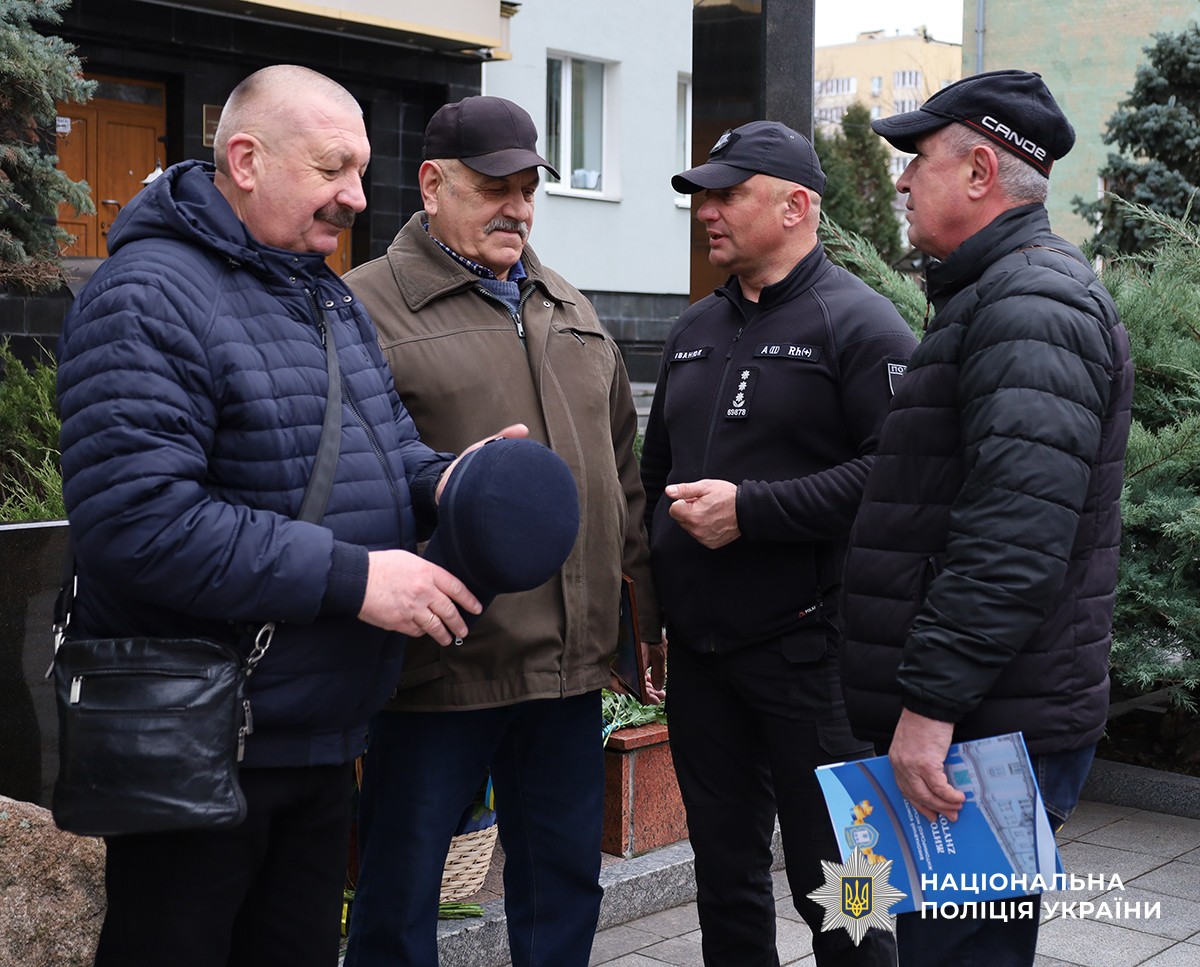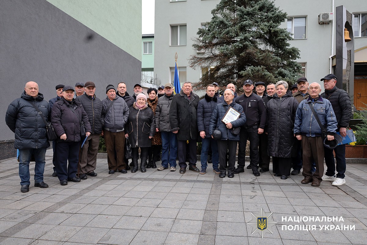 Після офіційної частини заходу заступник начальника ГУНП області Юрій Іванюк поспілкувався з ветеранами-ліквідаторами аварії на ЧАЕС.