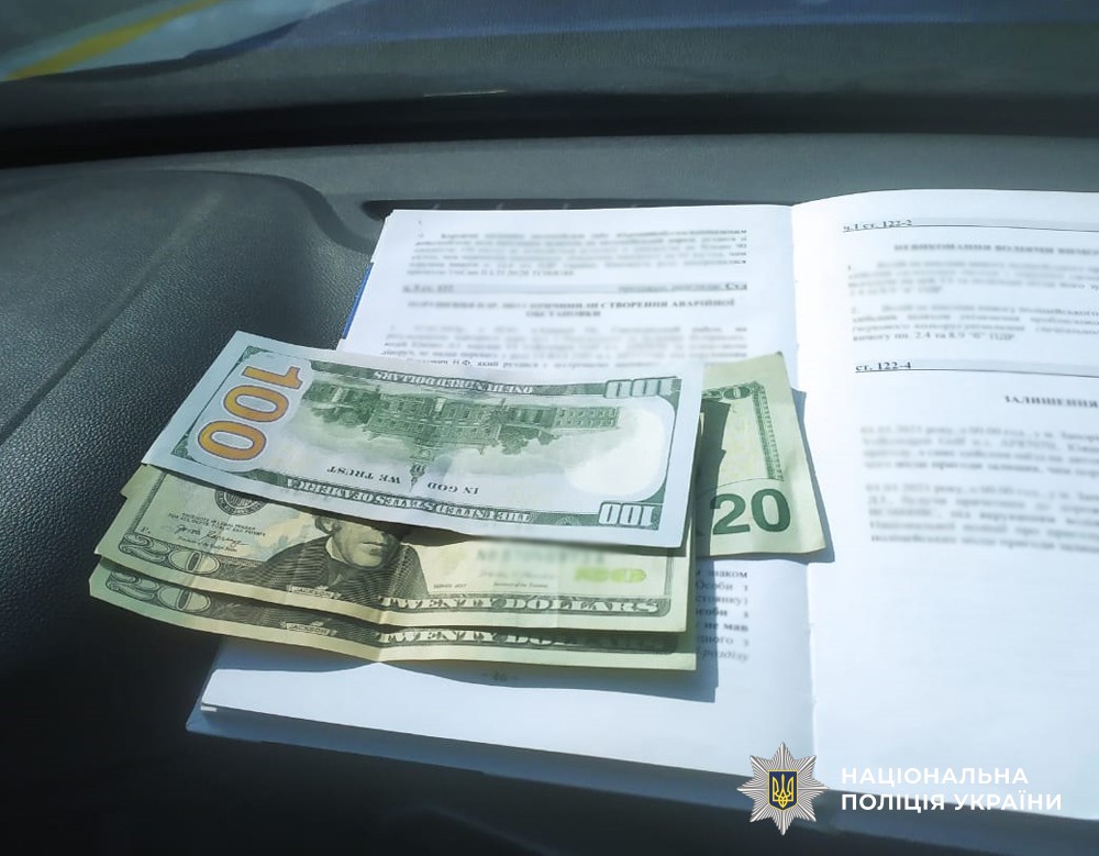Щоб уникнути покарання за вчинені правопорушення керманич запропонував поліцейським відкупне. Чоловік не зважав на неодноразові попередження патрульних про неприпустимість таких дій та поклав 180 доларів у службовий автомобіль.