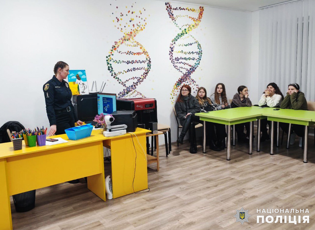 У еколого-натуралістичному центрі поліцейська, для закріплення поданої інформації, продемонструвала підліткам навчальне відео, яке демонструє історію потерпілих від дій кривдників та їх порятунку.