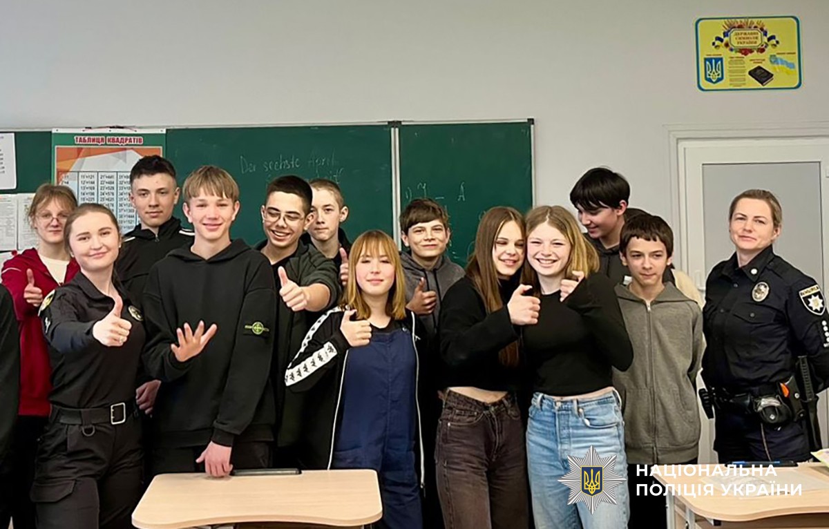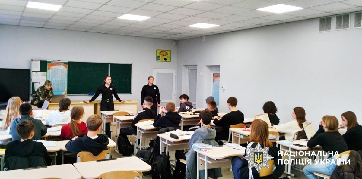 Разом із соціальним педагогом правоохоронниці провели превентивні бесіди з учнями 6 та 8 класів. Поліцейські розповіли підліткам про основні правила безпеки під час навчального процесу. Зокрема, спікерки наголосили на важливості дотримання правил поведінки на заняттях і перервах, а також про обов’язкове реагування на сигнали повітряної тривоги.