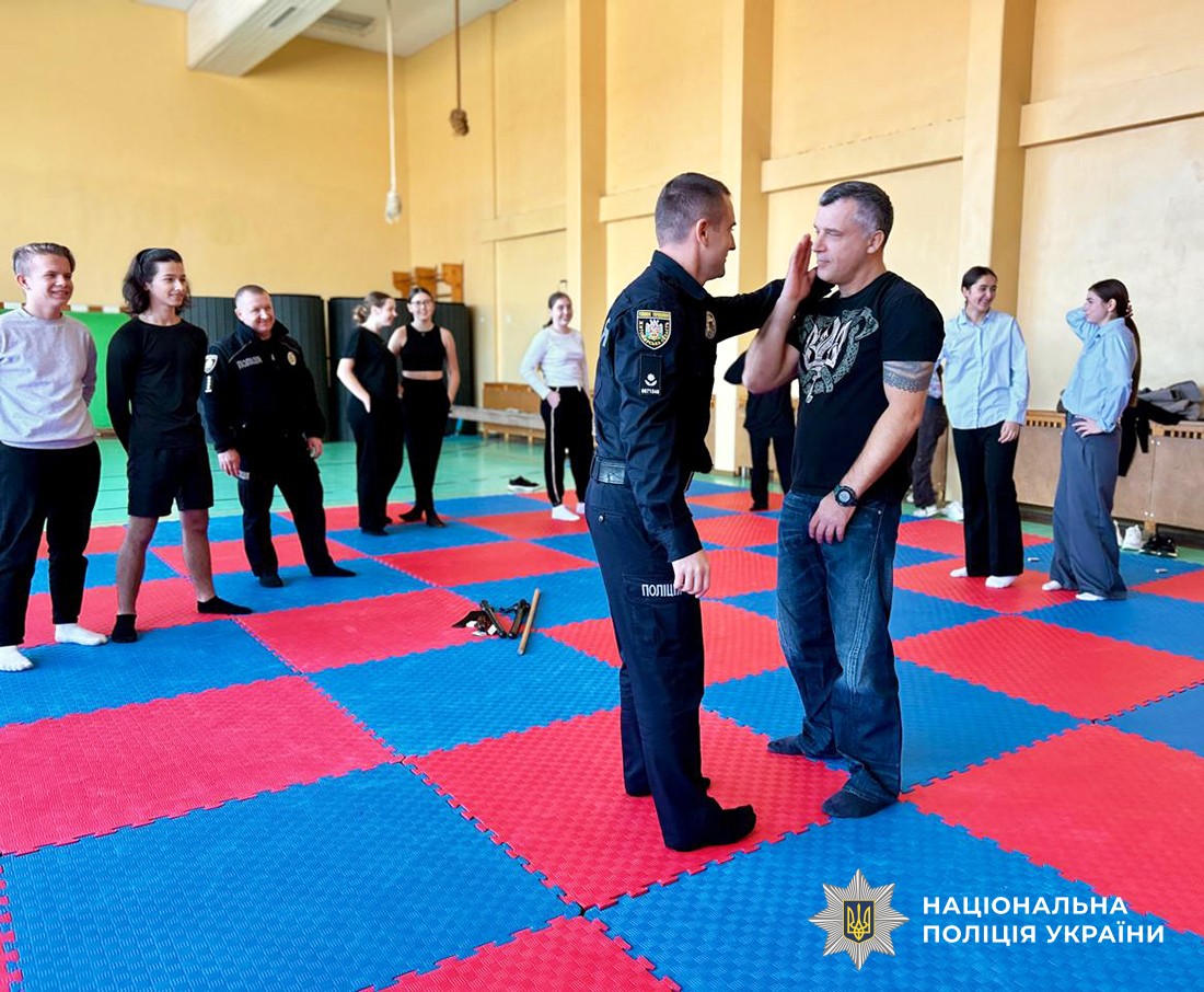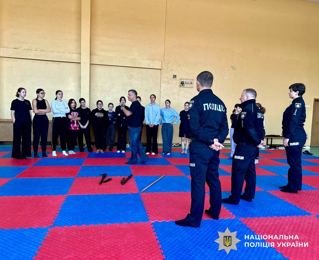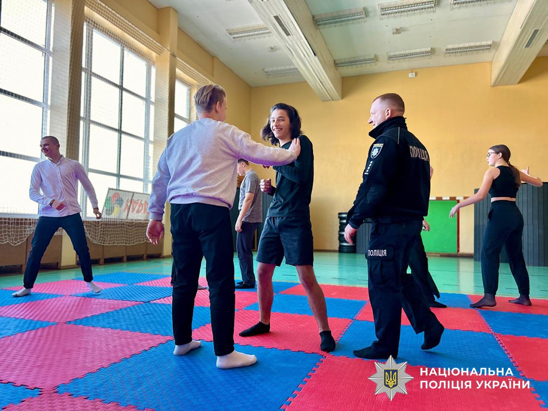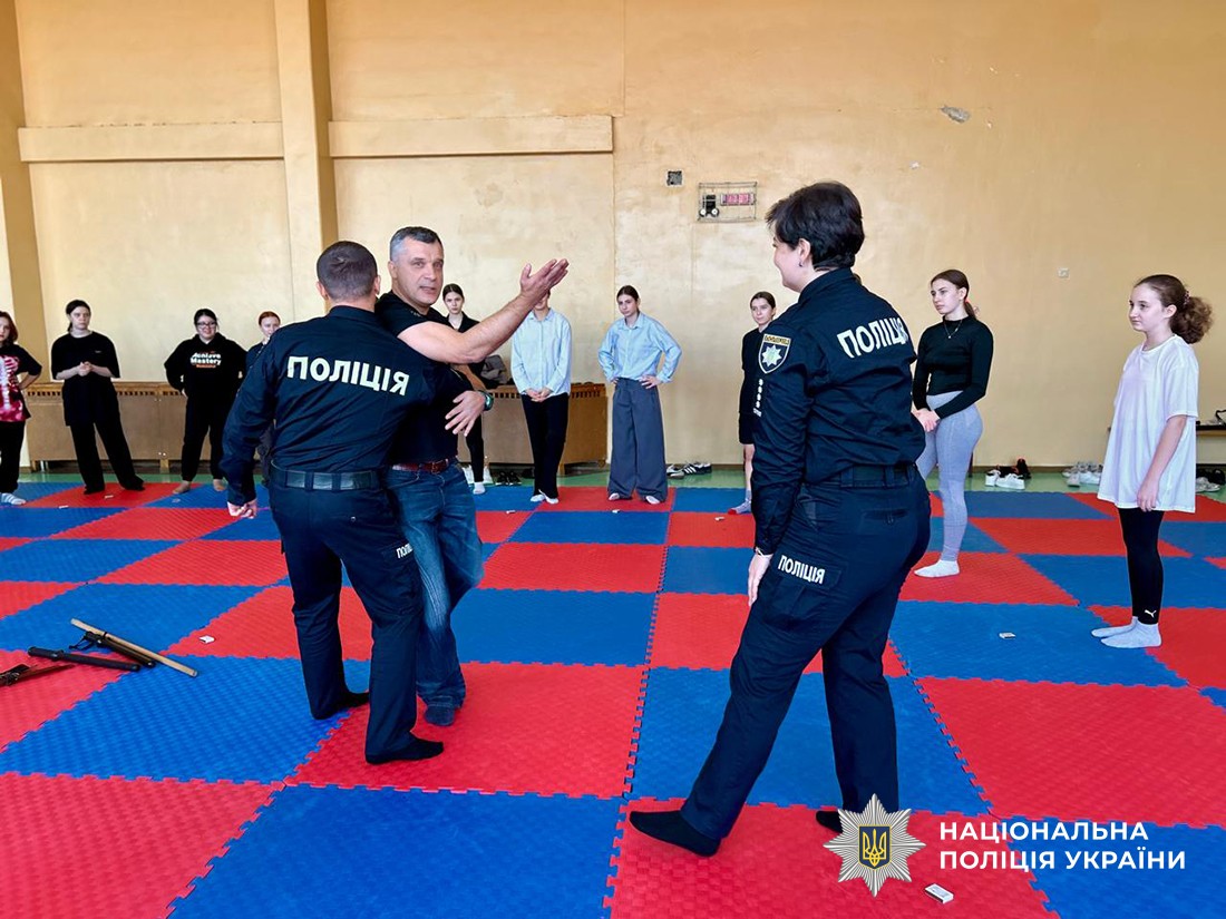 У Звягелі поліцейські навчали ліцеїстів прийомів самозахисту