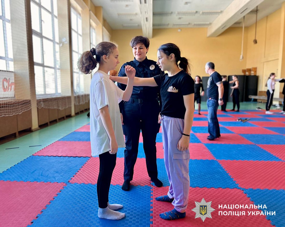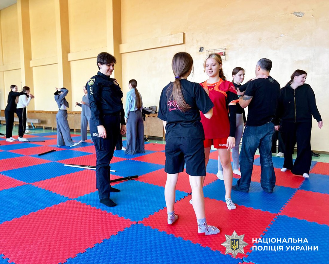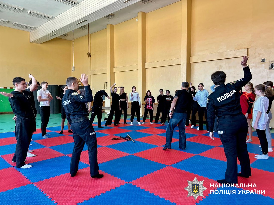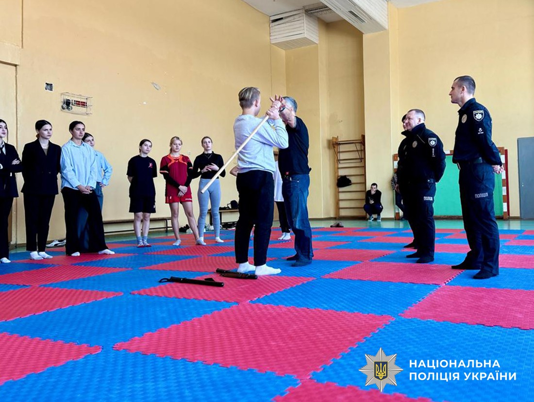 У Звягелі поліцейські навчали ліцеїстів прийомів самозахисту